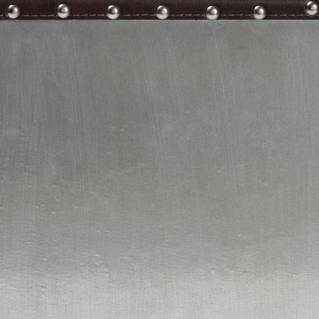 Embellish your interior with the poise of industrial vigor through the stunning Jacey end table. This vintage inspired piece consists of a sturdy wood frame ornamented with a sleek metal casing. Two drawers offer convenient storage for household essentials, while reserving the tabletop as a chic display area. The Jacey will arrive fully assembled and is adorned with faux leather handles as well as nail head studded bands for an added touch of robust timelessness. Straight legs with rounded feet complete the look, making the Jacey storage cabinet an enchanting fixture of any layout.