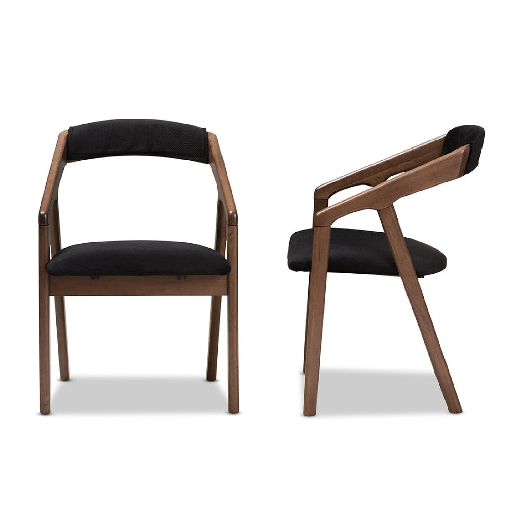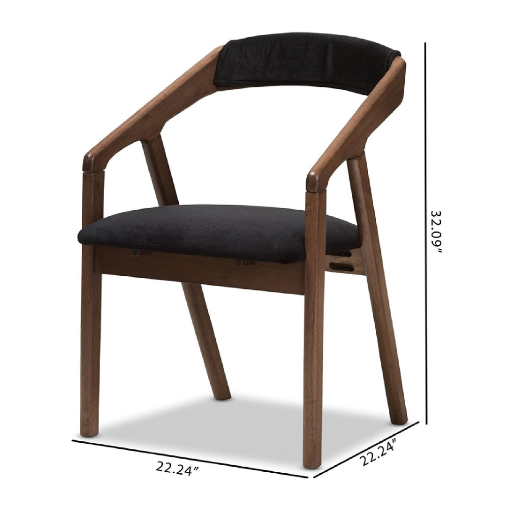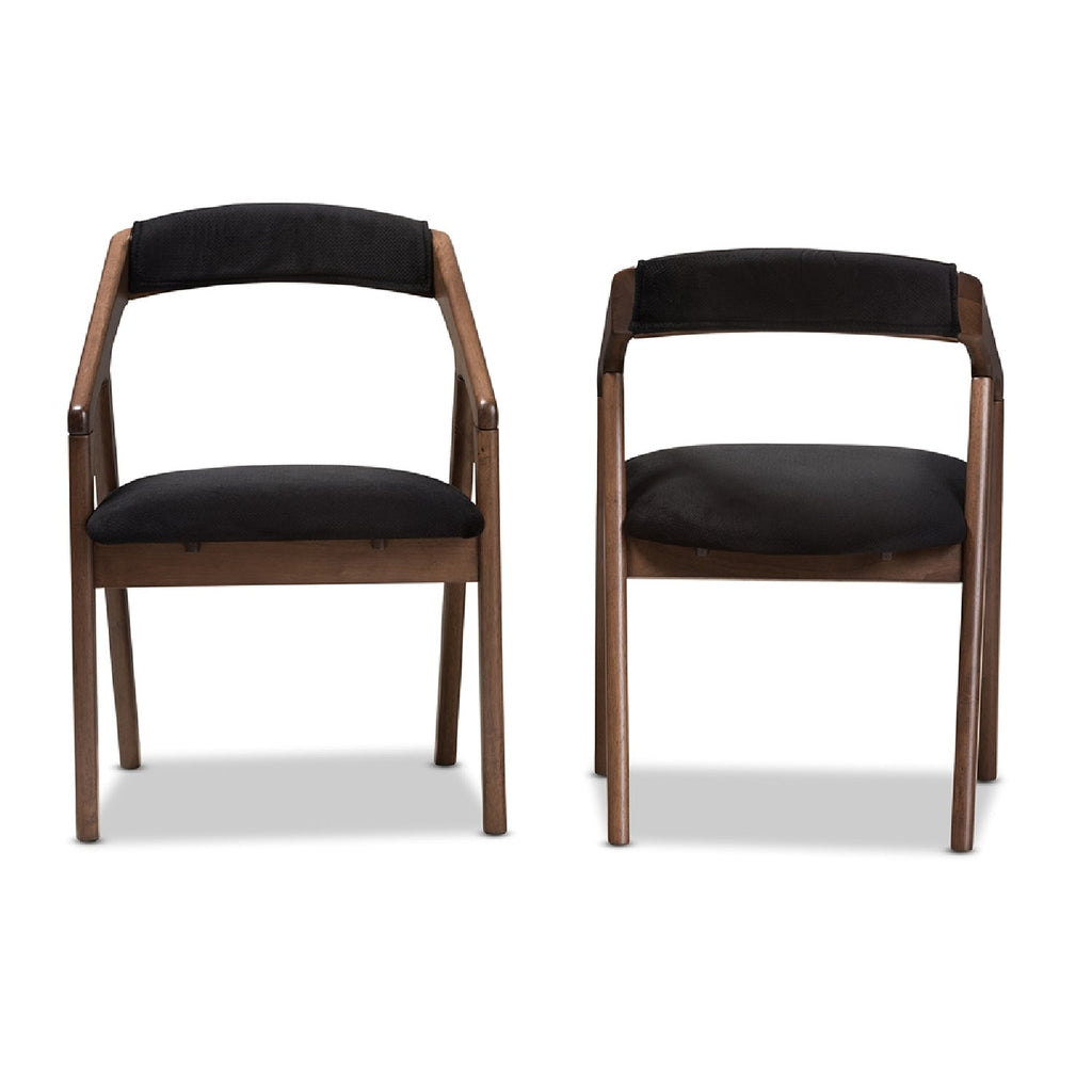 Meticulously crafted with craftsmanship, the Wendy dining chair is as functional as it is stylish. Featuring cushioned seats upholstered in black velvet upholstery, this set of two dining chairs feature curved backrest with downward sloping armrests extended to the ground. Embracing mid-century modern design, the Wendy will update your home decor instantly. Made in Malaysia, the Wendy requires assembly.