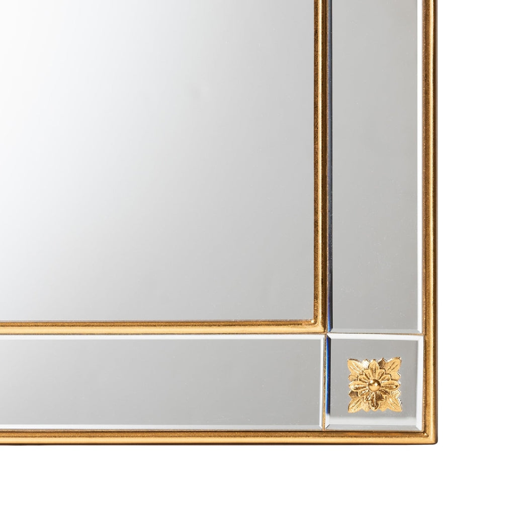 The Iara wall mirror exhibits luxurious craftsmanship with refined flair. This glamorous piece consists of a geometric wood frame fitted with a large central mirror. Clean lines distinguish the borders of this piece while meticulously crafted floral embellishments adorn each corner. The Iara will arrive fully assembled and is wall mountable. A gorgeous rendition of subtle opulence, the Iara wall mirror is sure to refresh any interior.