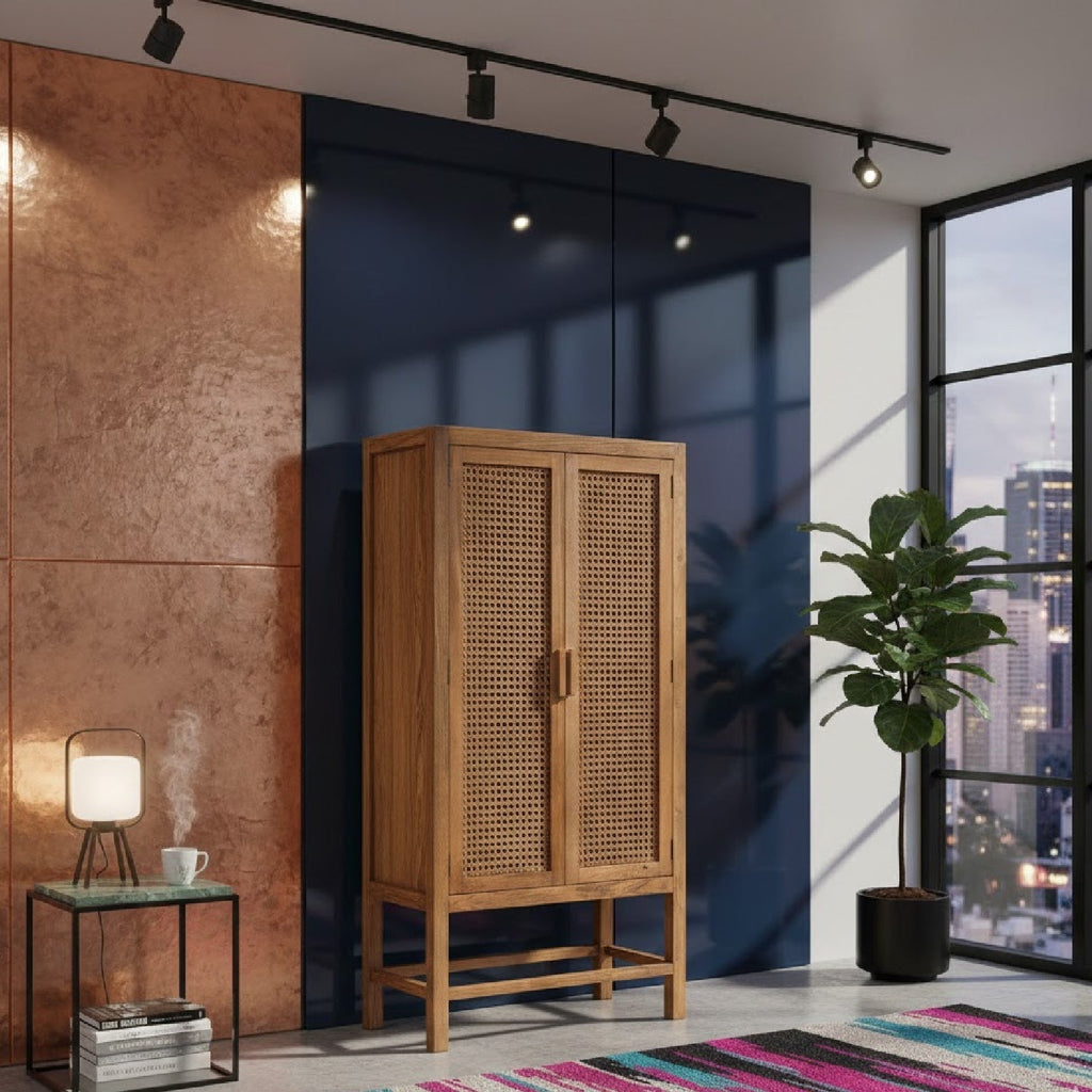 Teak Framed Rattan Cabinet | Bali Loom Sibu