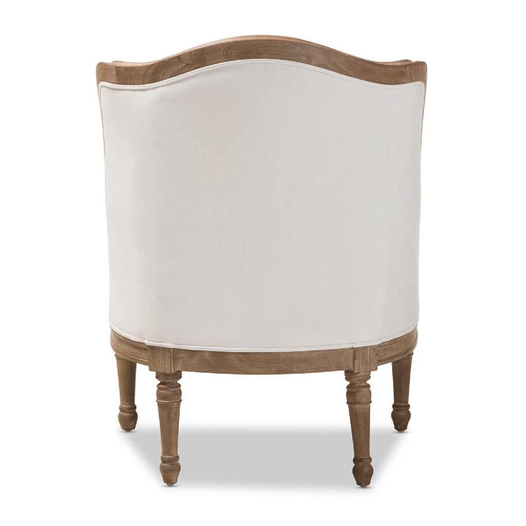 Classic contouring, contrasting leg designs and the comfort of cotton combine to create our Charlemagne Traditional French Accent Chair. Cedar wood frame and distressed brown ash, oak wood finish (with white streaking) celebrate this timeless design. The upholstery provides versatility for surrounding the Charlemagne with accents, furniture and wall decor. There's really no comparison to this attention to detail in the discount furniture arena.
