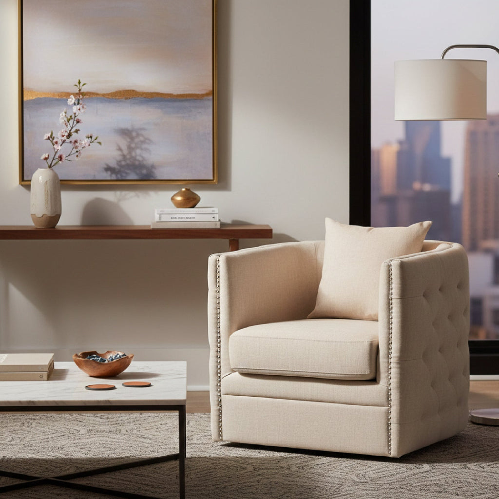 Tufted Beige Swivel Chair | Bali Loom Micah