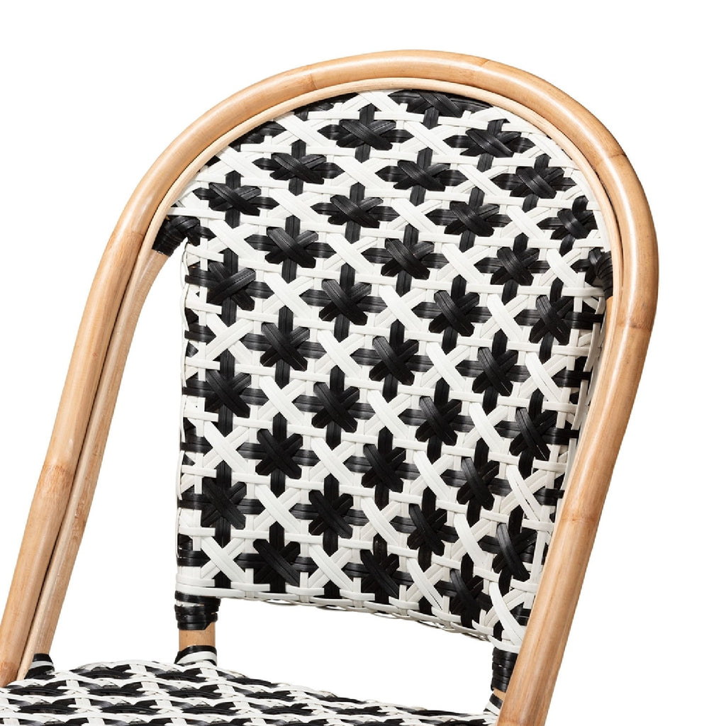 Cultivate the familiar serenity of a lovely French in your space with the lovely Ambre bistro chair. This charming piece consists of a sturdy rattan frame wrapped in woven plastic embellishments. Its round backrest draws attention to the intricate geometry of the weaving while providing a smooth embrace. The Ambre will arrive fully assembled and features angled legs connected by a crisscross base for excellent stability and support. Projecting an air of carefree elegance, the Ambre bistro chair transforms the feel of any arrangement. Due to the nature of the natural materials used in this product, it may have variations in areas such as, but not limited to, color, pattern, grain and texture. The hair-like strands of rattan/rattan-fiber are common due to nature of the material.