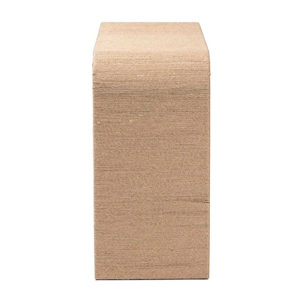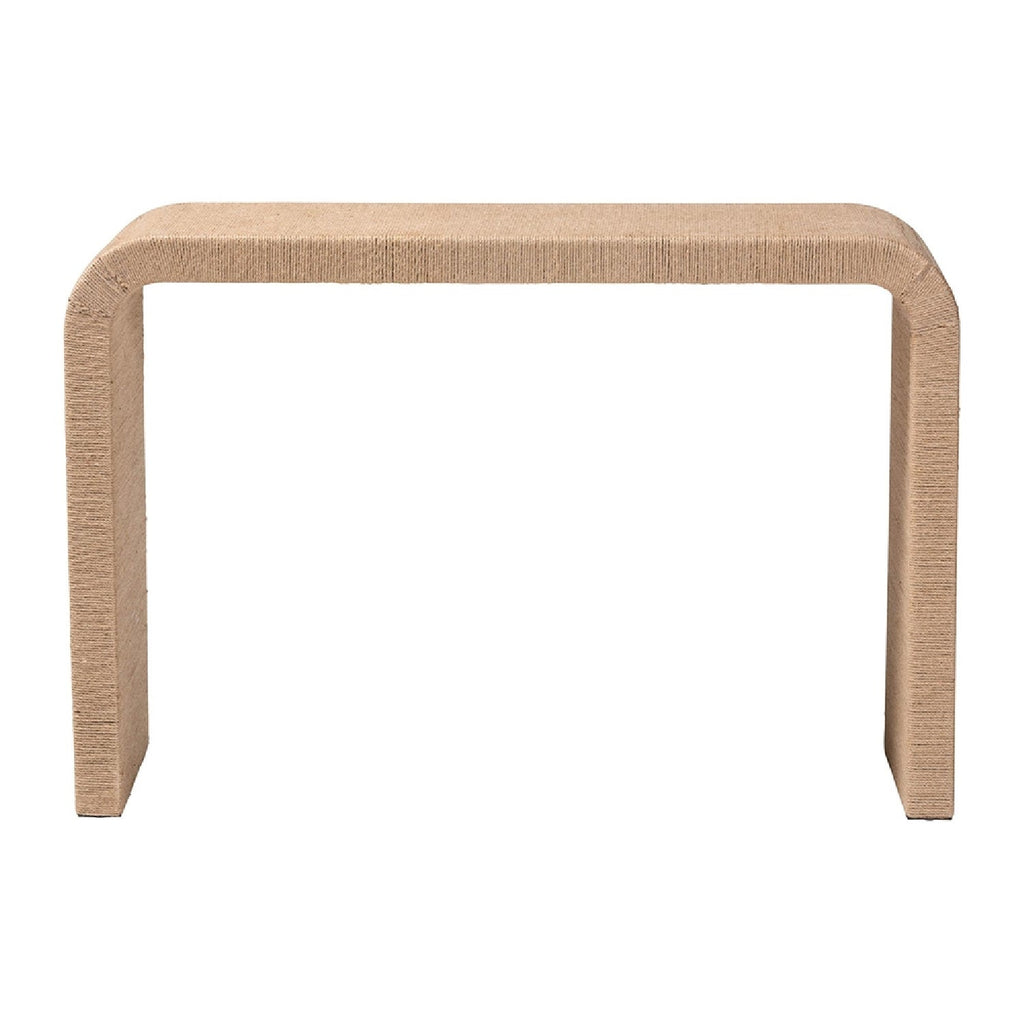 Unleash the personality of paradise in your space with the lovely Eviana console table. This Japandi piece consists of a sturdy wood frame beautifully embellished with woven jute. The sleek design of its waterfall silhouette adeptly complements a variety of settings while serving as a fantastic display area. The Eviana will arrive fully assembled and it is recommended to be used with a fitted glass tabletop for proper maintenance. Exuding an aura of robust artistry, the Eviana console table transforms any arrangement.