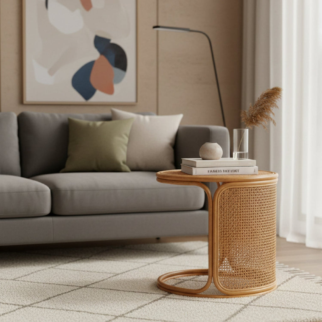 Woven Rattan Round End Table | Bali Loom Eldon