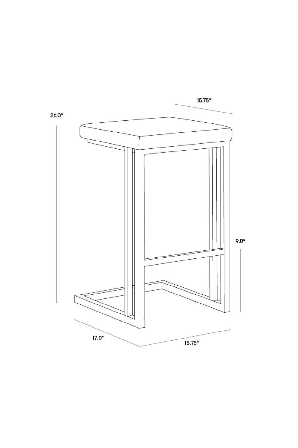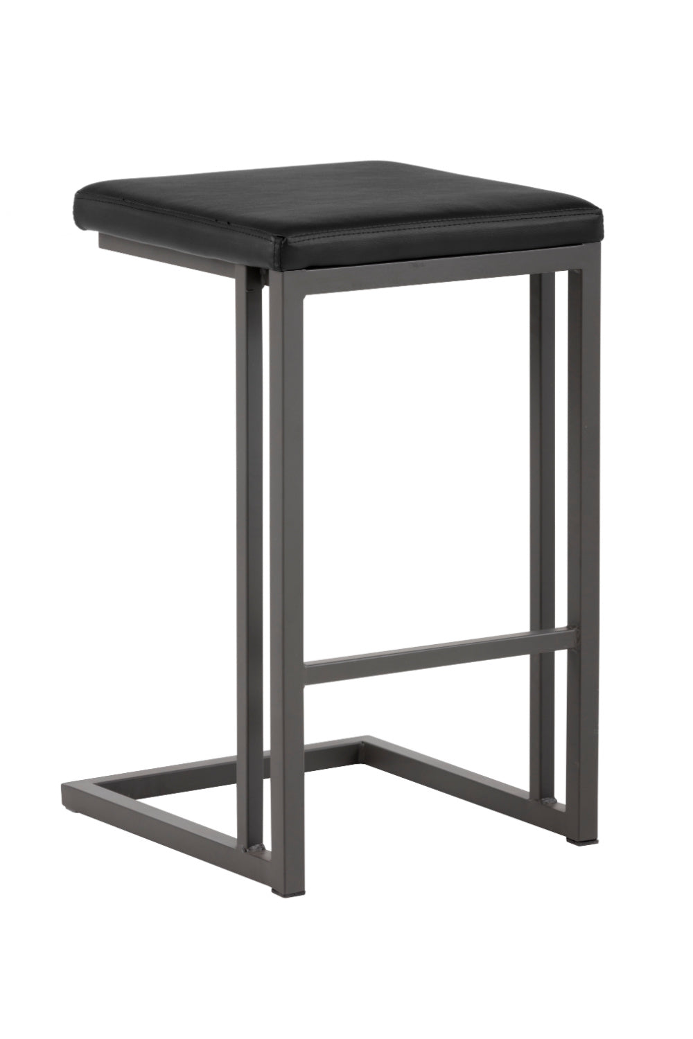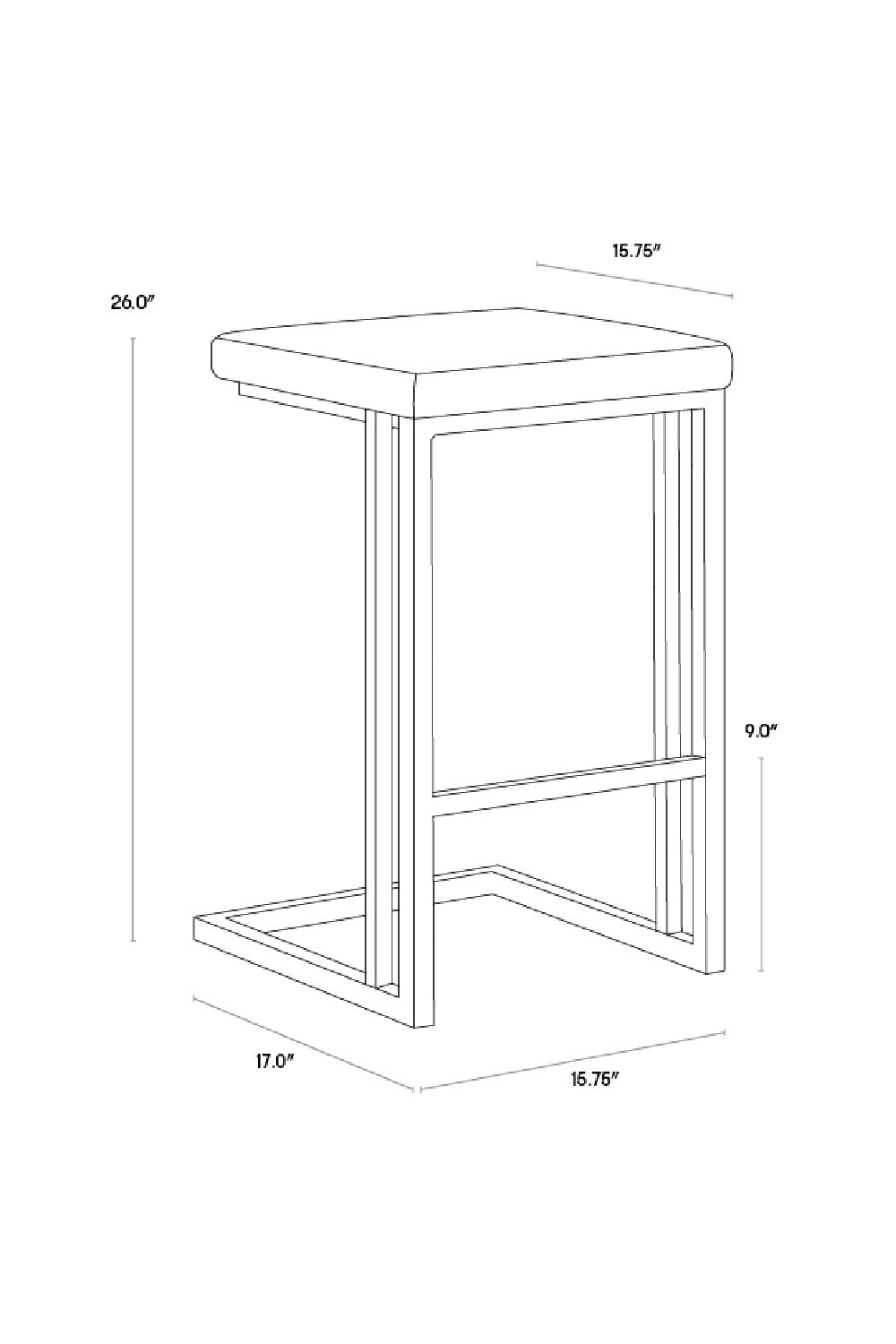 A modern industrial stool featuring a backless seat in onyx faux leather. Finished with a cantilever steel frame and footrest. Suitable for various dining, kitchen and bar spaces of all sizes. Champagne gold steel has a copper undertone.