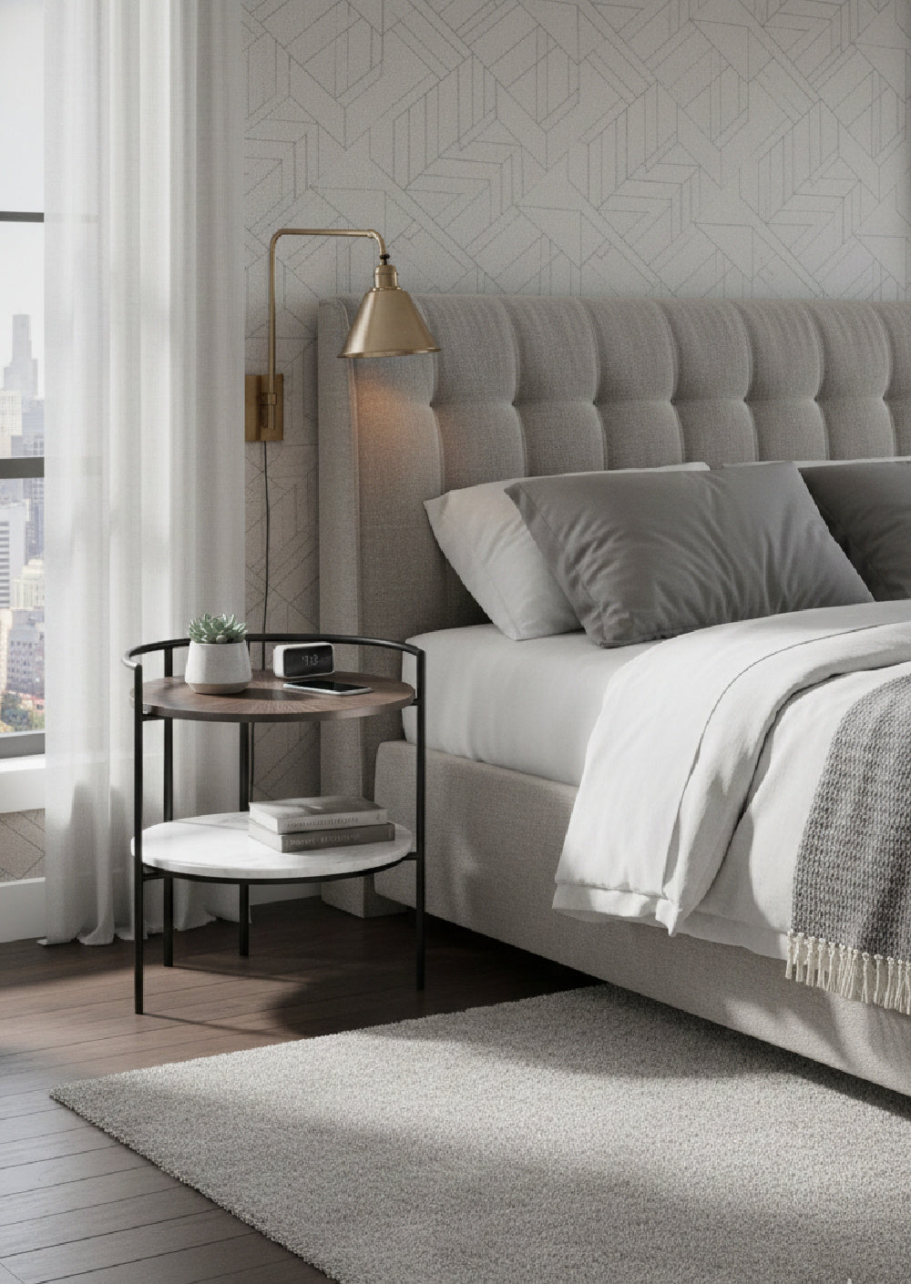 Round Gunmetal & Marble Nightstand | Splendido Brighton