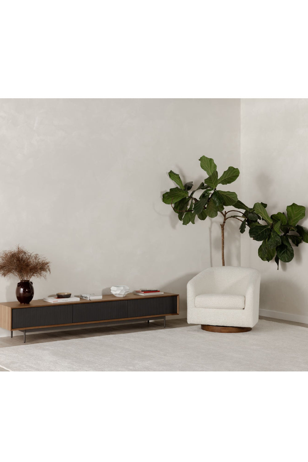 Light and cheerful. Calm and relaxed. The Oscy swivel chair is a cloud of comfort that brings airy energy and convenience into your living room with its 360° swivel, floating base design. Idyllic for a reading nook or as an accent chair, the Oscy creates a chic retreat with  upholstery that looks fresh and feels cozy.