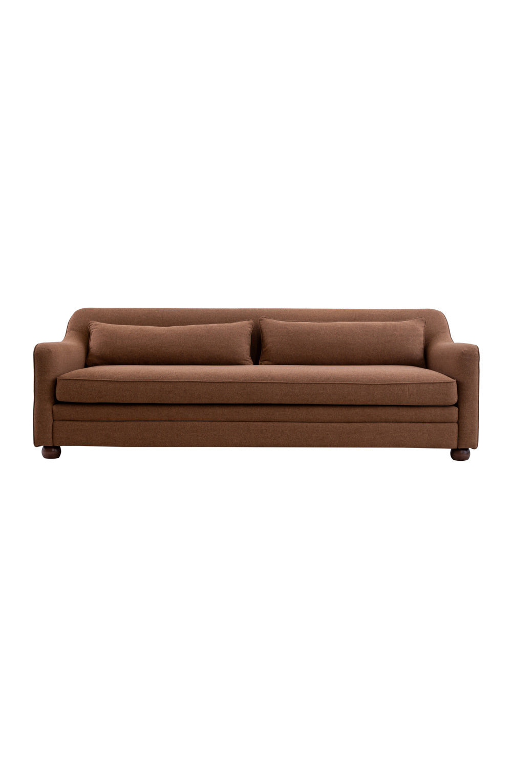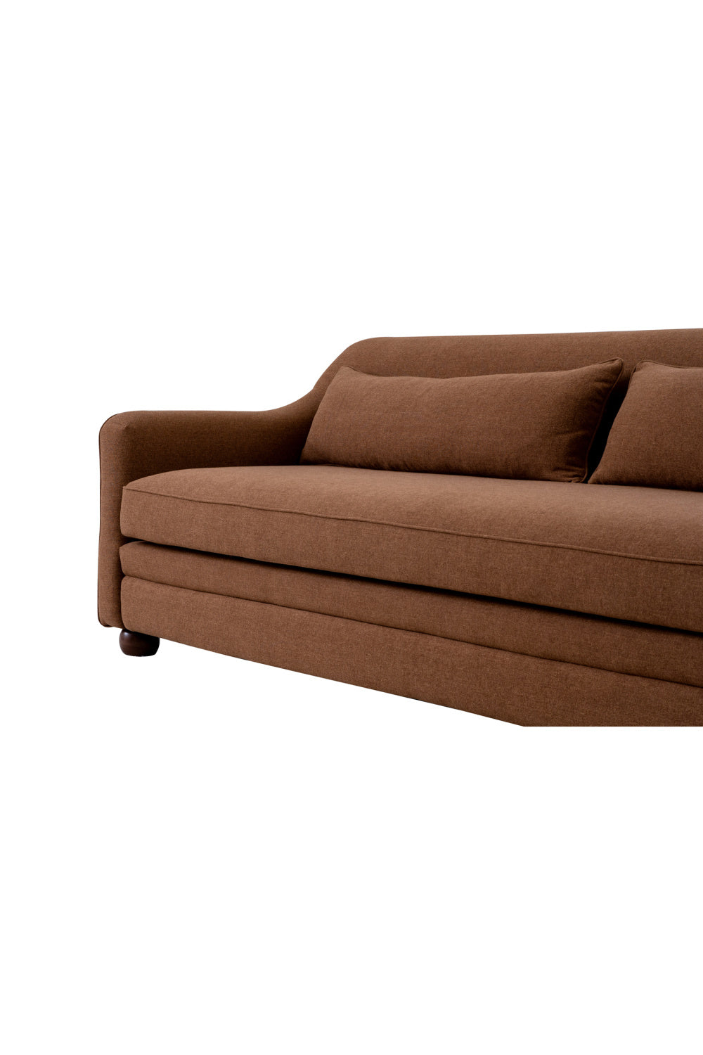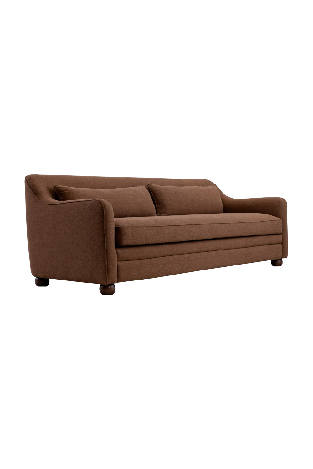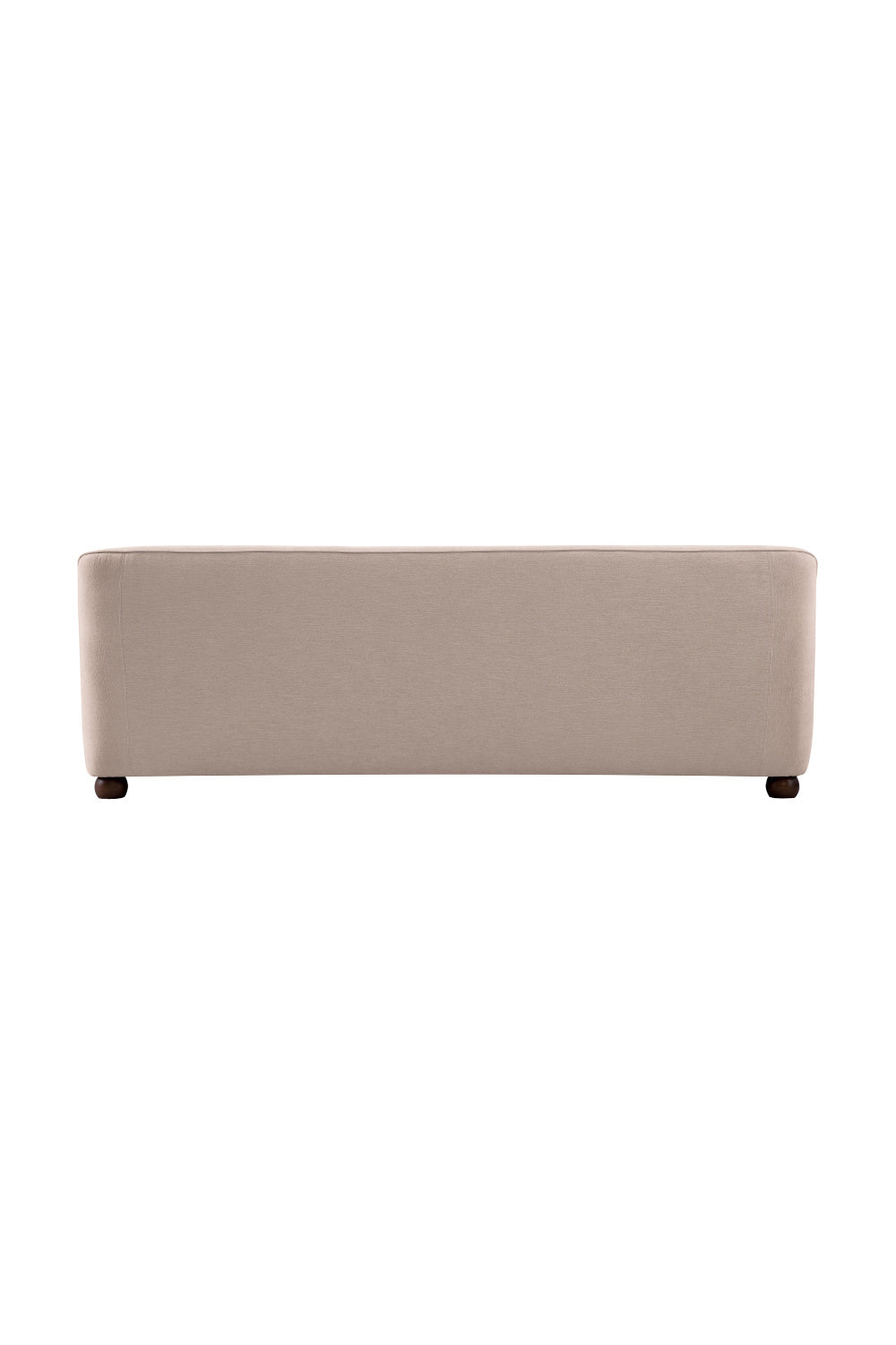 The Amira sofa offers warmth and comfort with its gracefully curved high back and subtly flared arms. Upholstered in durable polyester fabric with piping cushion details. The feather and fiber topped bench seat cushion creates luxurious repose. Generously proportioned lumbar cushions and solid wood feet complete this centerpiece.