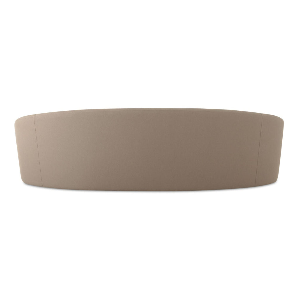 The Cove sofa's elegant design features a soft, curved form atop a sleek plinth base and discreet plastic leg, offering secure, graceful seating. Fully upholstered in a water-resistant, all-weather fabric, the sofa ensures a lasting look suitable for outdoor spaces.