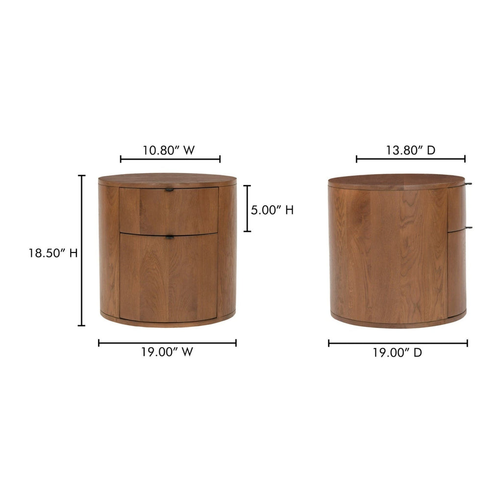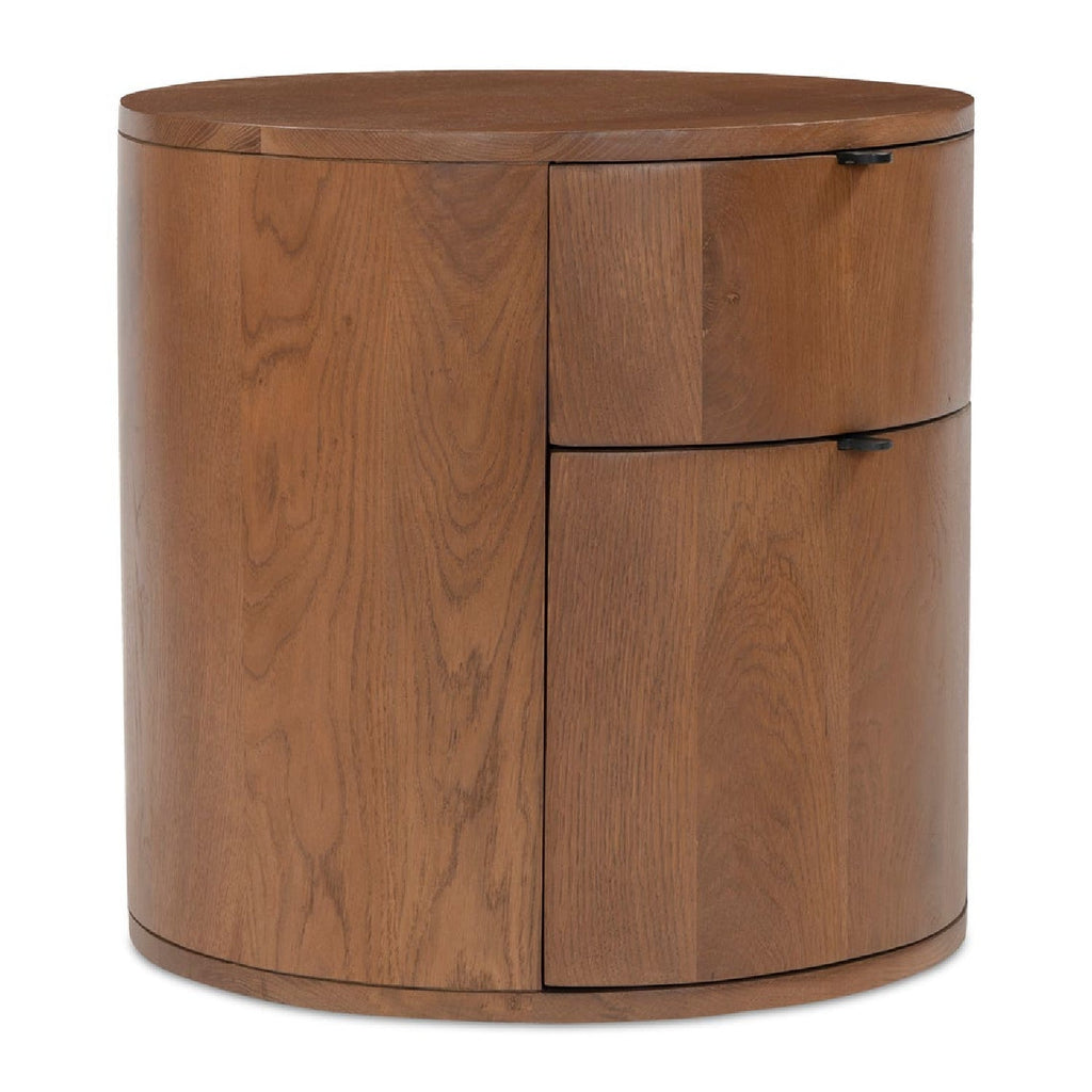 Brown Oak Round 2-Drawer Nightstand | Novi Living Theo