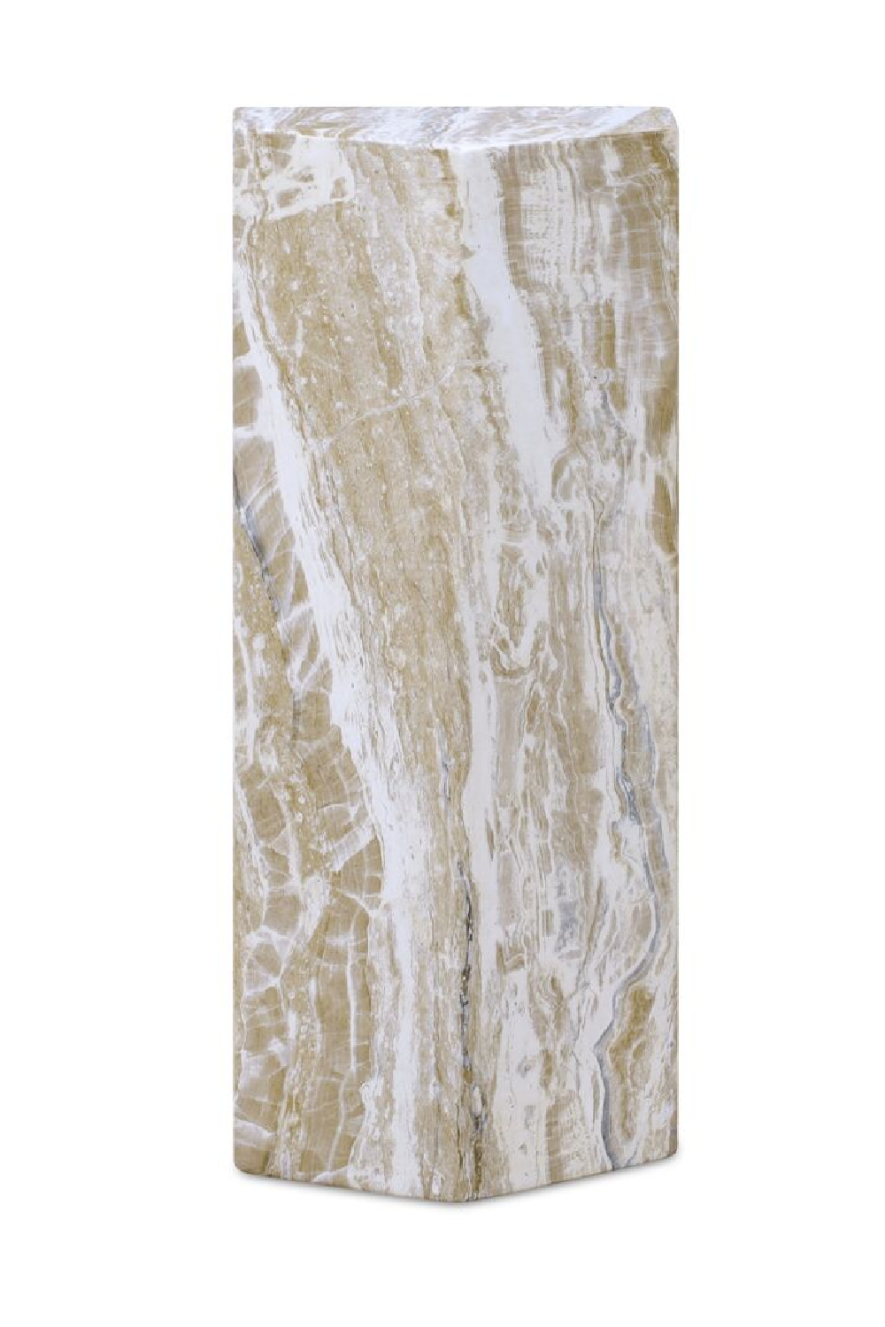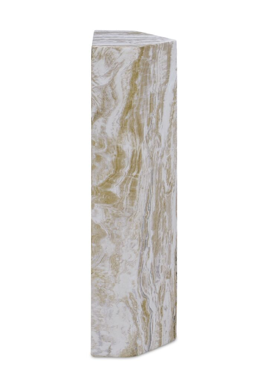 Because even your side table deserves main character energy. This five-sided accent piece brings serious presence, with sculptural form and bold texture. Cast in concrete and finished using a water-transfer technique, it mimics expressive marble veining with natural variation across every surface. Durable enough for the patio, striking enough for the living room.