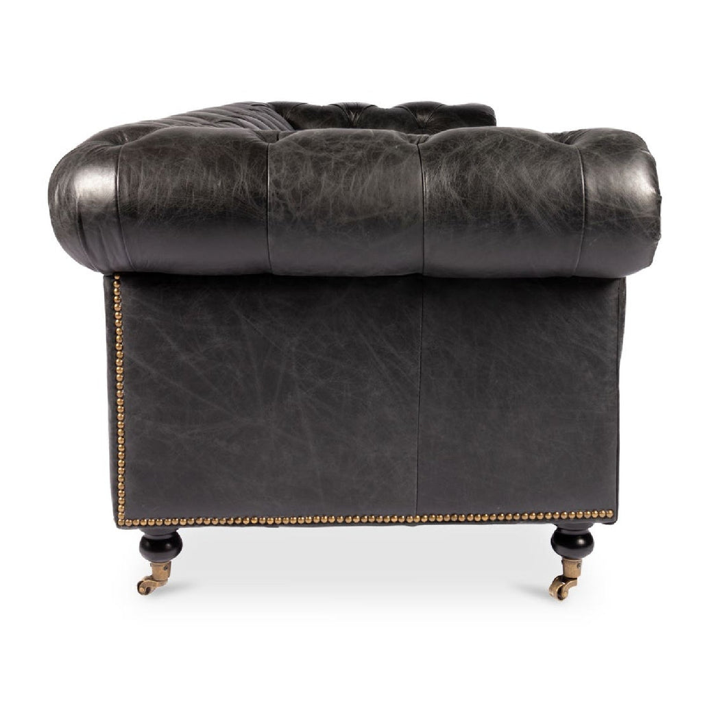 Capturing the bold elements of traditional design, the Birmingham Sofa adds sophistication to your living space with its top-grain leather in brown or gray. Sharp details are apparent in the Chesterfield's tufted back, rolled arms, and meticulously placed brass detailing—pairs nicely with an Old Fashioned.