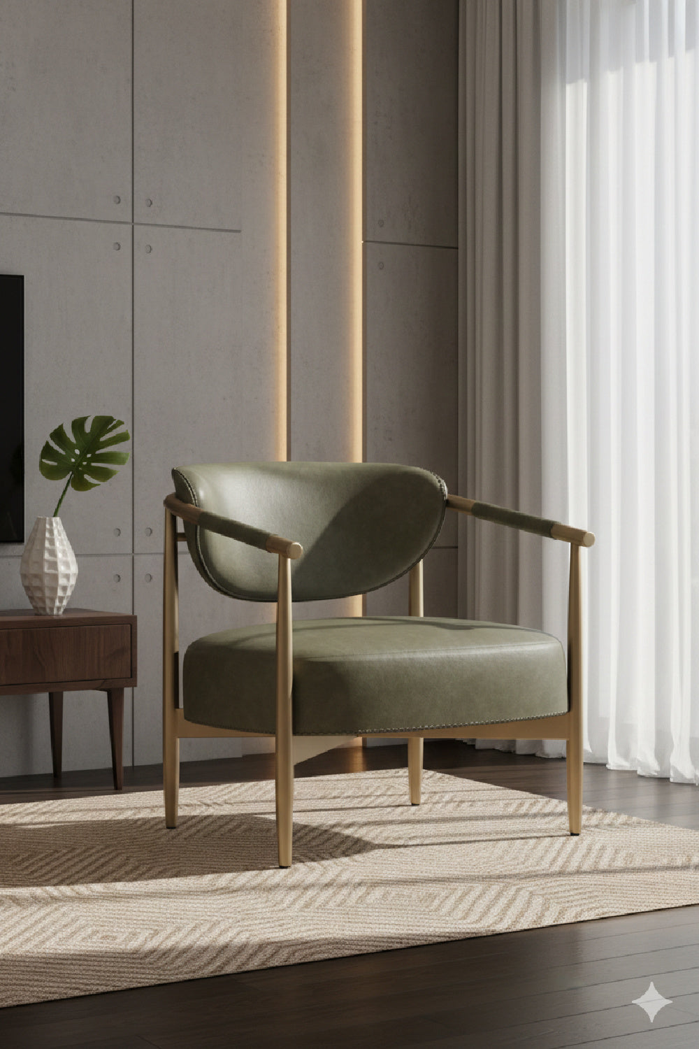 Gold-Framed Leather Lounge Chair | Splendido Heloise