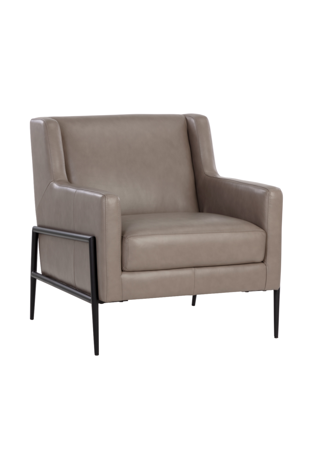Introduce comfort to any space with this modern lounge chair. Upholstered in alpine grey Italian bovine leather and completed with a black powder coated steel frame.