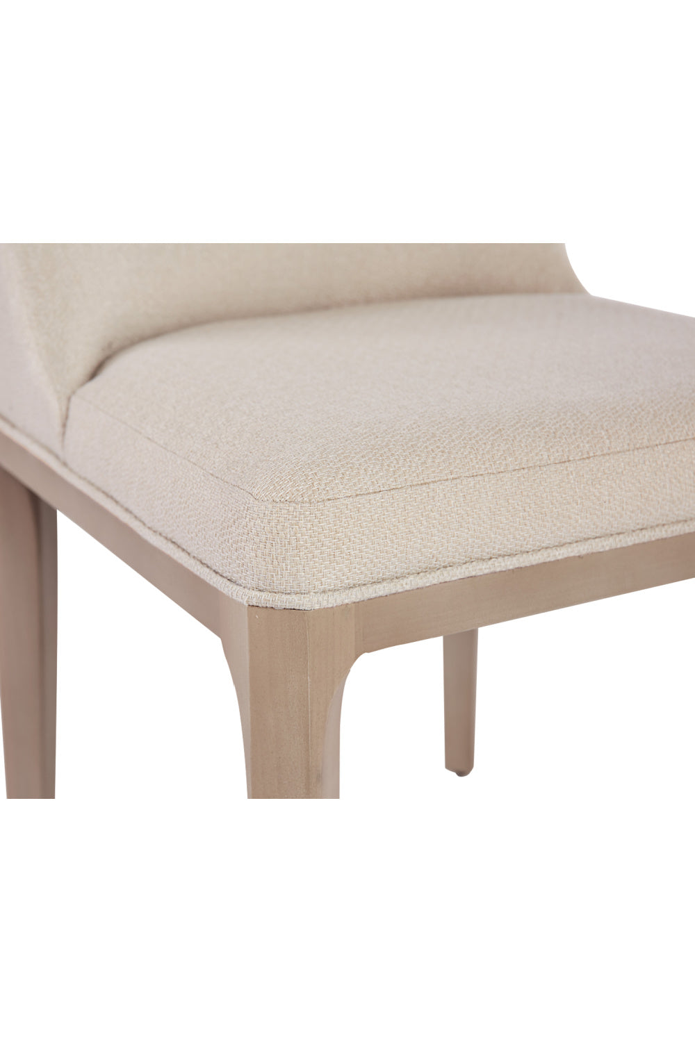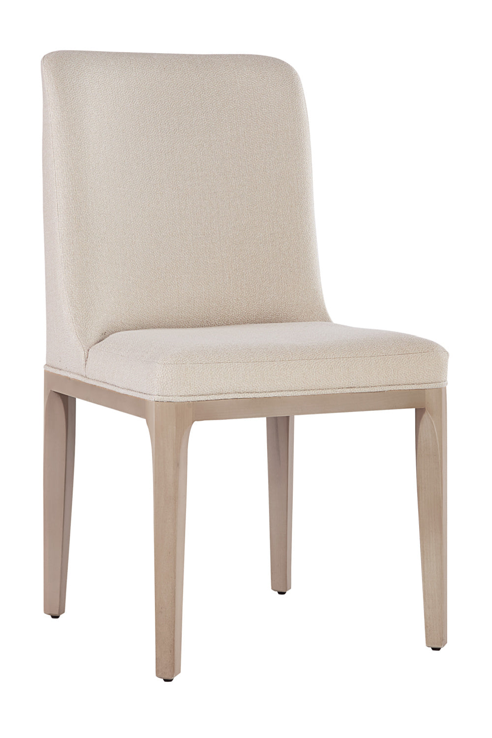 With a timeless design, this dining chair boasts a stunning mid-century appeal. Stocked in our beautiful fabric and completed with solid poplar wood legs in a light oak finish. As wood is an organic, porous material, these pieces will contain natural variation of texture and may also exhibit fine indentations and cracks. Wood pieces will also display a disparity of color and grain, and visible knots and burls that add to the character of each piece.