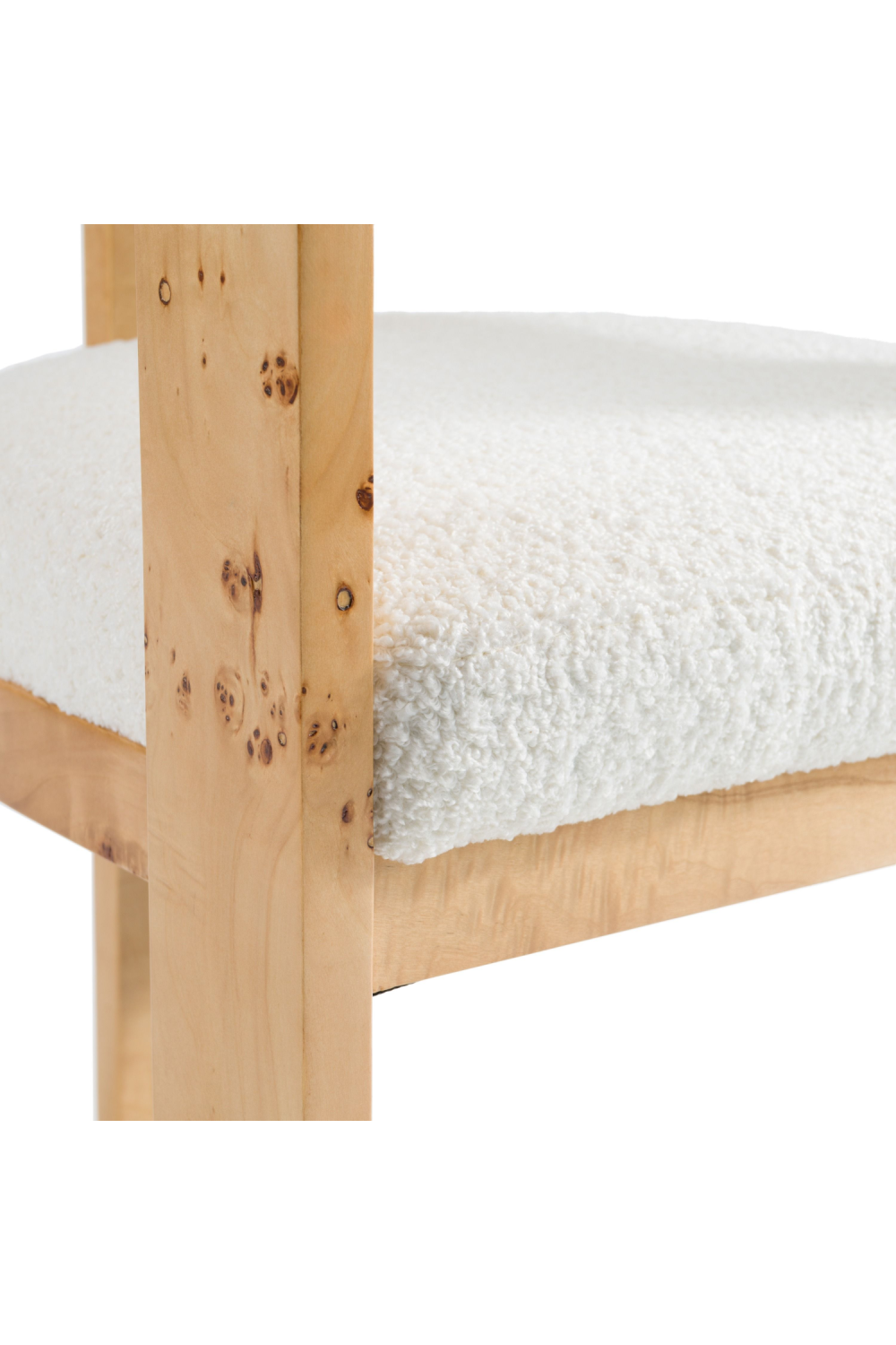 The Modrest Letha Modern Cream Fabric and Burl Dining Chair effortlessly merges organic textures with modern luxury, making it an iconic piece for the refined home. Upholstered in sumptuous cream fabric, the chair offers both comfort and elegance, while the natural burl wood veneer showcases stunning variations that evoke a sense of artistry and nature. With its graceful wingback design and brass-accented tripod legs, this dining chair brings a bold yet sophisticated statement to any dining space. Ideal for those who appreciate craftsmanship and subtle opulence, the Letha elevates the ambiance of any modern setting.