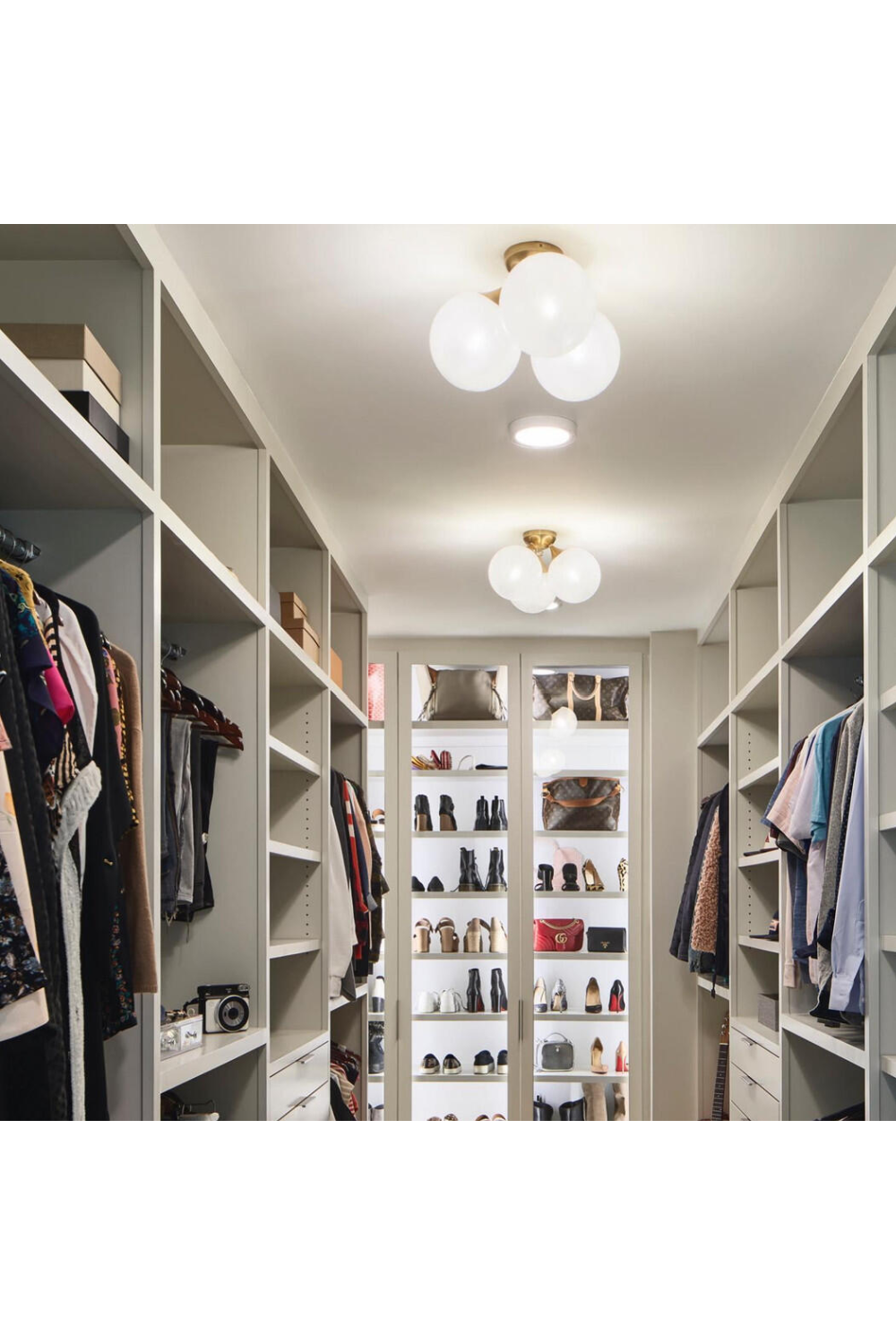 This flush mount combining three globes puts a contemporary spin on a traditional style. Its white glass globes illuminate with a beautiful glow. This simple design is understated and elegant, perfect for using in multiples throughout your space.