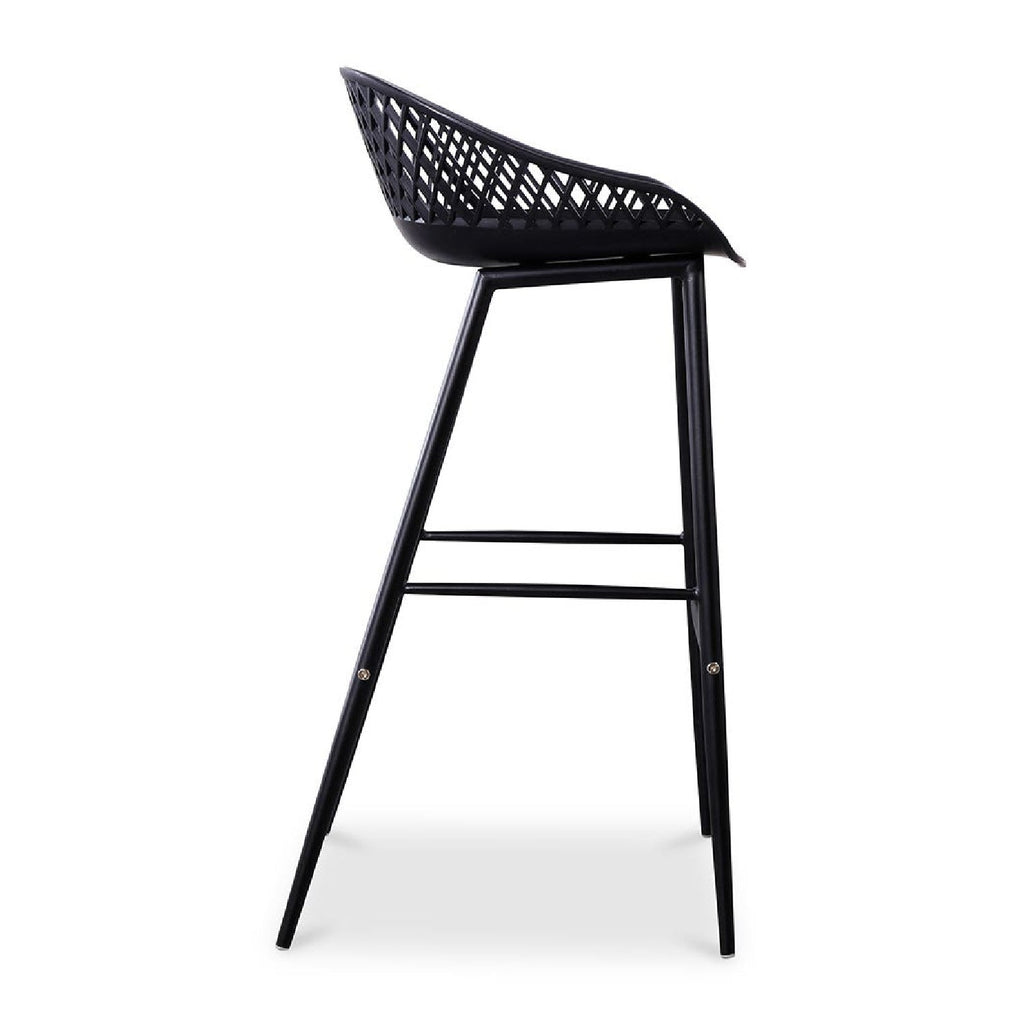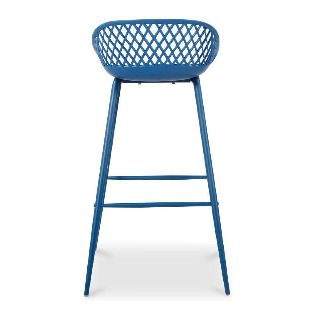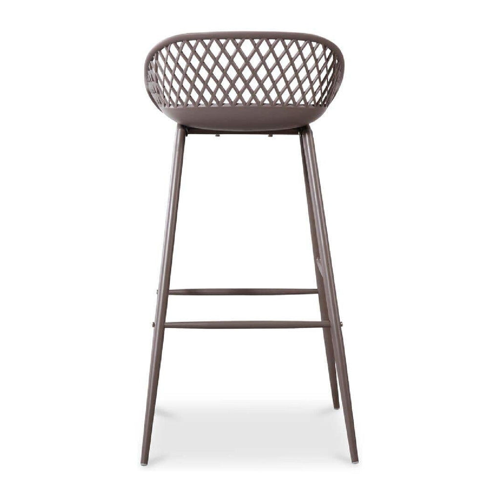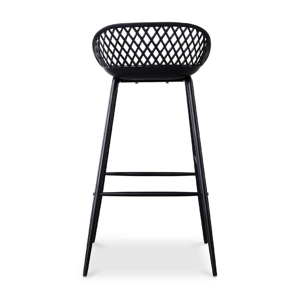 Take a seat in the stylish and comfortable Piazza Bar Stool. Made with a durable polypropylene, this chair comes in several colors that will be sure to complement your outdoor design with its whicker backing and powder coated metal legs. The perfect addition to any table or as extra seating for guests.
