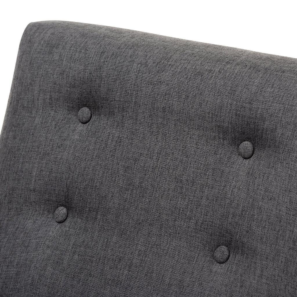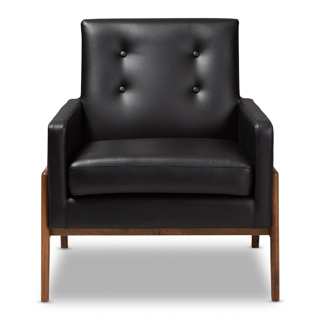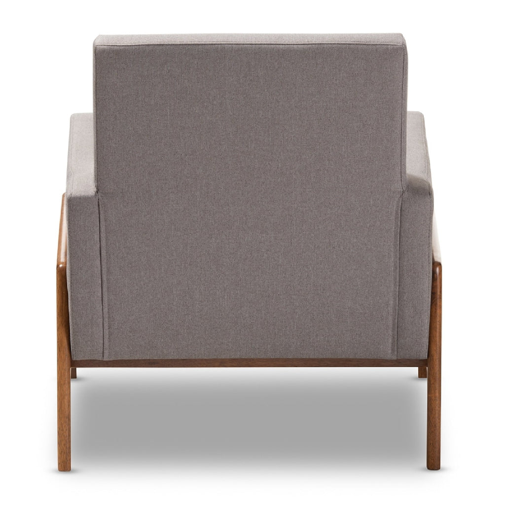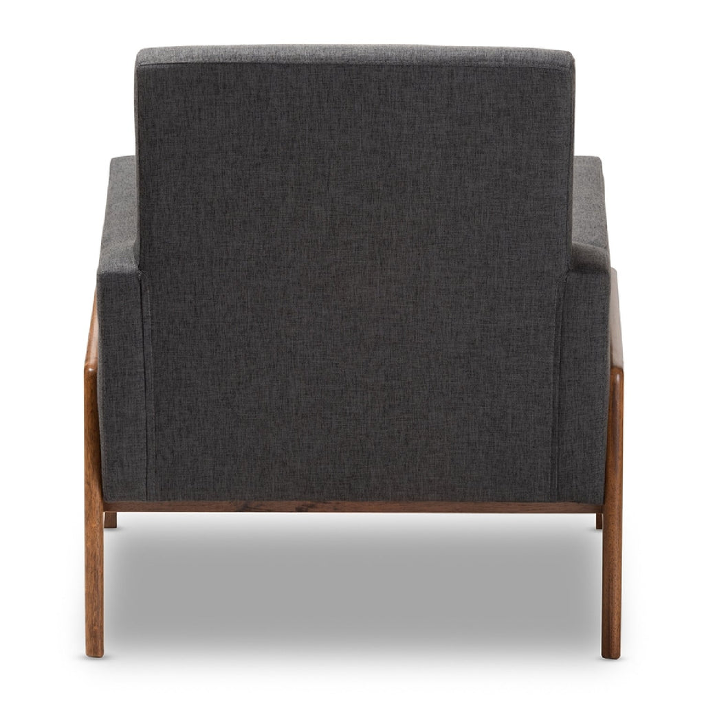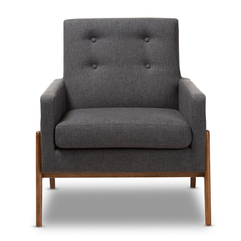 Add stylish and comfortable seating to your space with the Perris lounge chair. Inspired by mid-century modern design, the chair showcases curves in its arms and back, as well as a low-profile. The Perris is constructed from solid rubberwood and is foam-padded and upholstered in a sophisticated fabric or sleek leather. The chair features a brown walnut frame for a streamlined look, while subtle button-tufting on the back adds a touch of elegance. Place this retro style chair in the living room, reception area, or any other shared space. The Perris lounge chair is made in Malaysia and requires assembly.