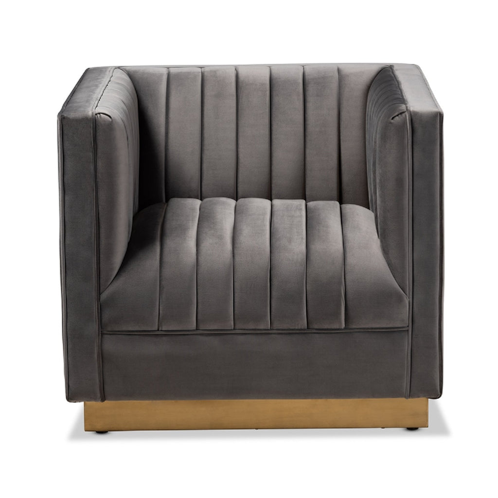 Gray Velvet Channeled Accent Chair | Bali Loom Aveline