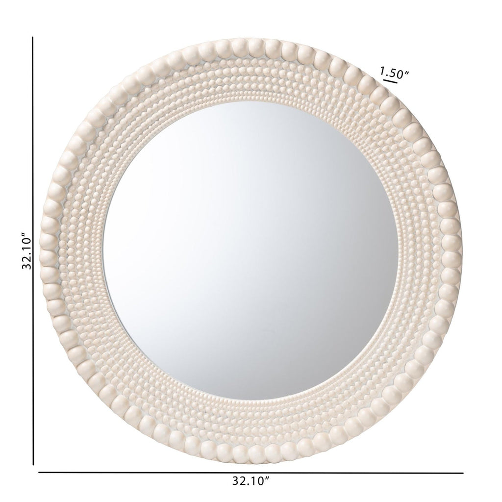 Round White Beaded Accent Mirror | Bali Loom Grazia