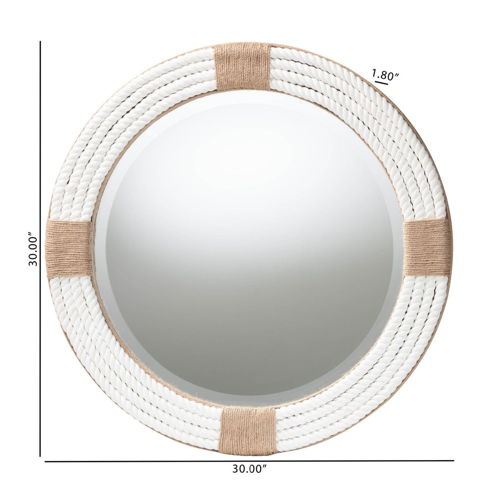 The breezy and vibrant charm of the Makya accent mirror bring a refreshing air to any layout. Made in Vietnam, this coastal piece consists of a wood frame embellished with woven fabric and jute accents. The braided fabric of its frame exudes rich visual allure while the round silhouette blends well with a variety of modern layouts. The Makya will arrive fully assembled and is wall mountable. Intricately woven rope embellishments lend rustic flair, making the Makya accent mirror a serene addition.