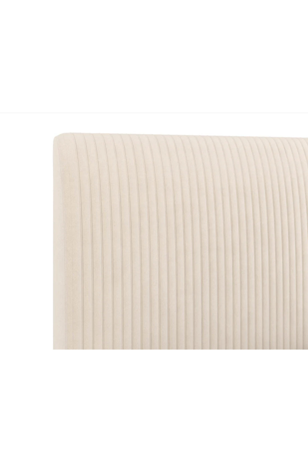Add a touch of modern style to any bedroom space with this comfortable bed. Upholstered in fabric, it features fine vertical tufting on the headboard. Completed with stainless steel gold legs. No box spring is required and slats are included. Performance fabric is moisture repellent, durable, and easy to clean.