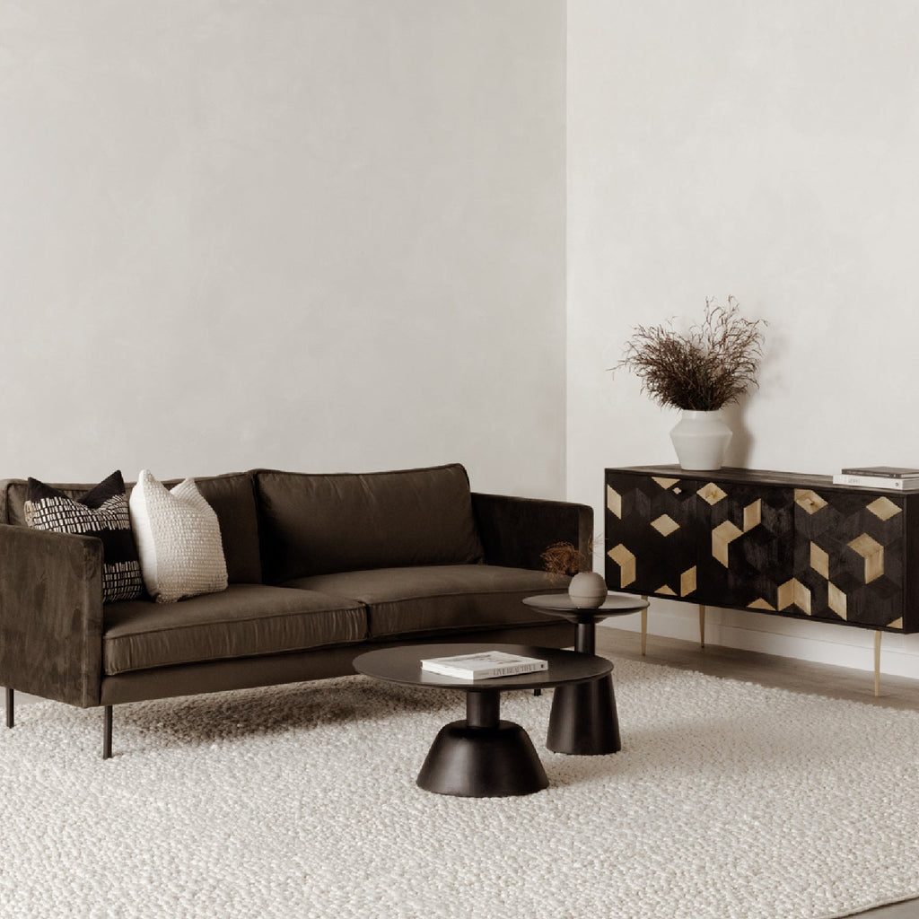 Sculpted serenity. Built from solid wood, the Nels coffee table puts the materials front and center, serving as a natural showcase for the woodgrain. Its tastefully sculpted form features a broad base and a simple round tabletop, a pedestal for beautiful happenings. For a perfectly simple take on contemporary design, look to Nels.