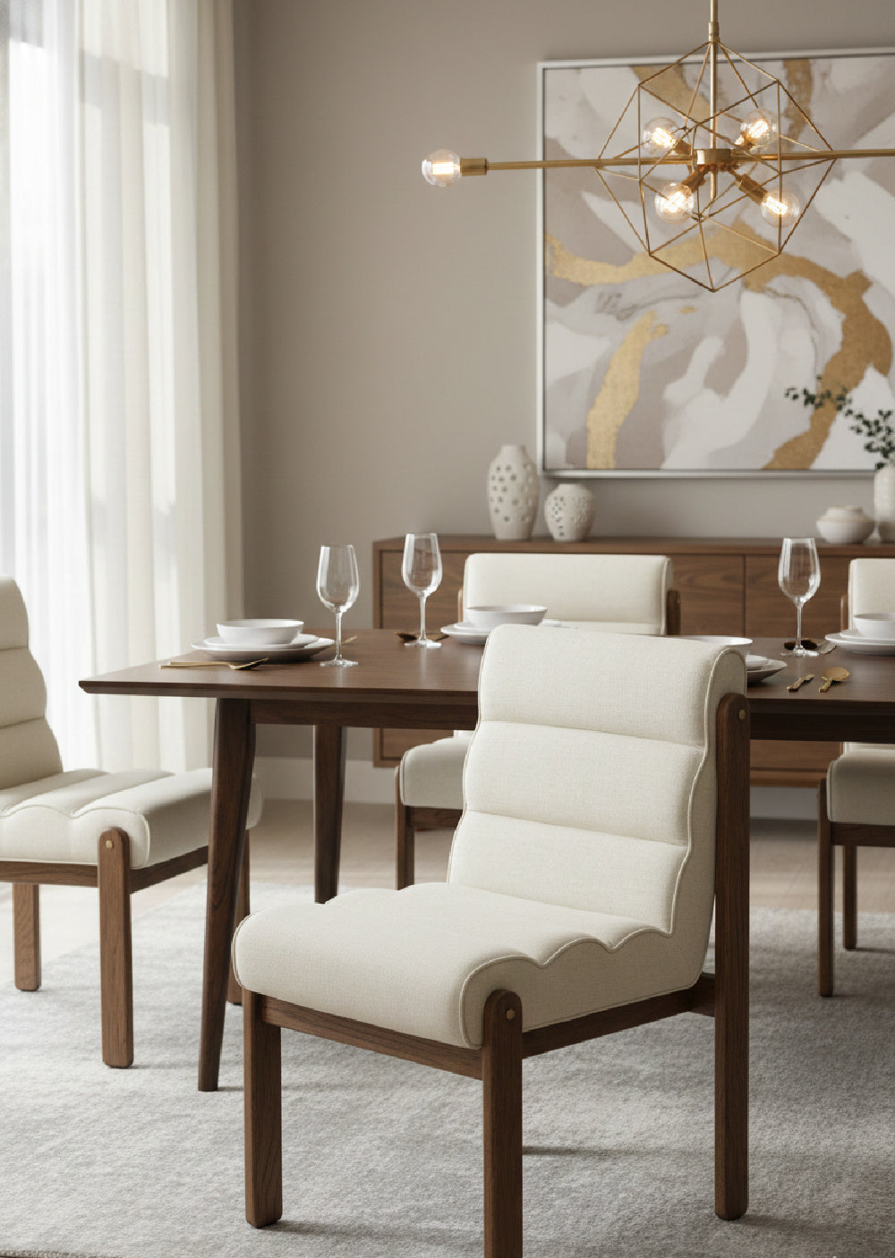 Channeled White Fabric Dining Chair | Splendido Bertie