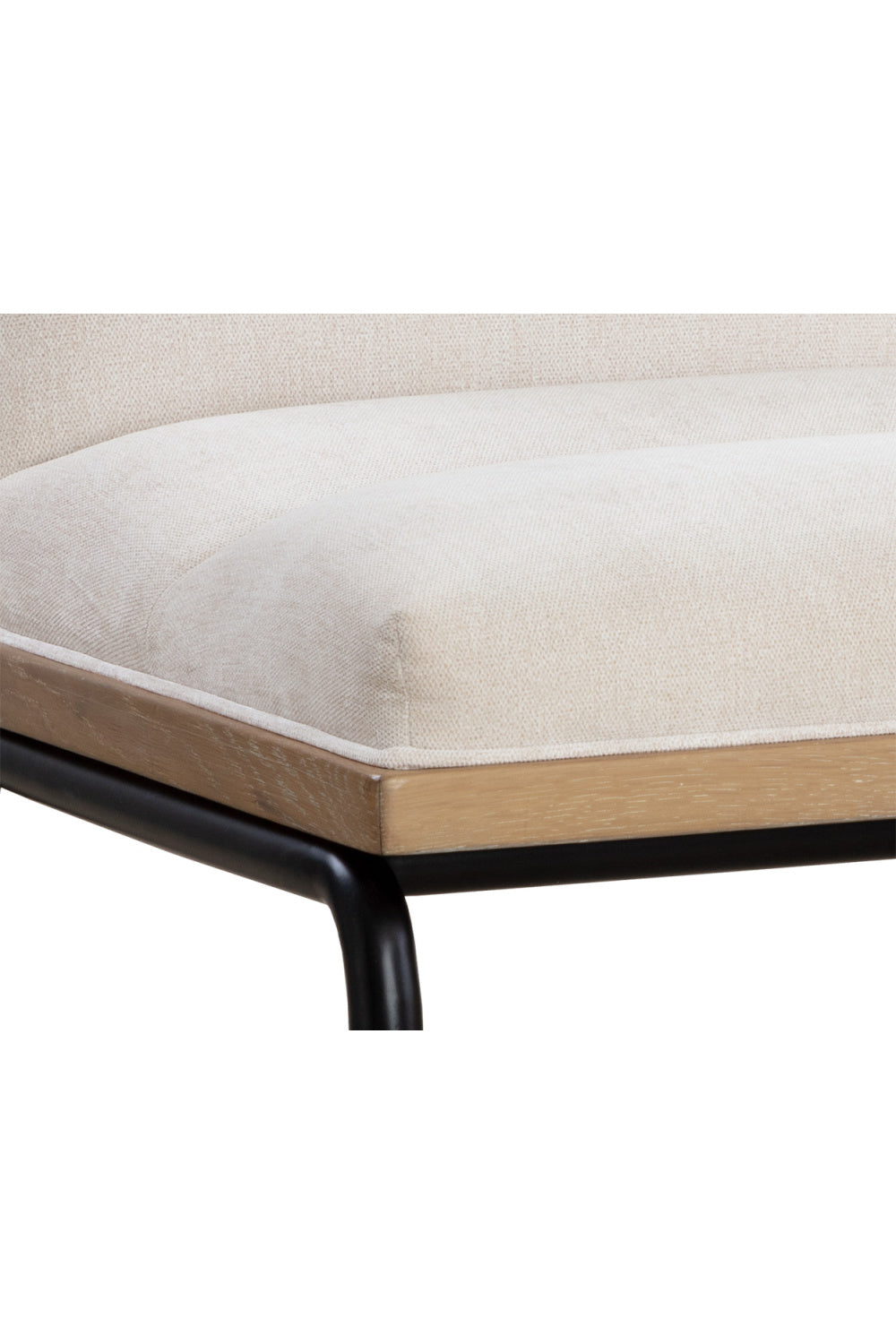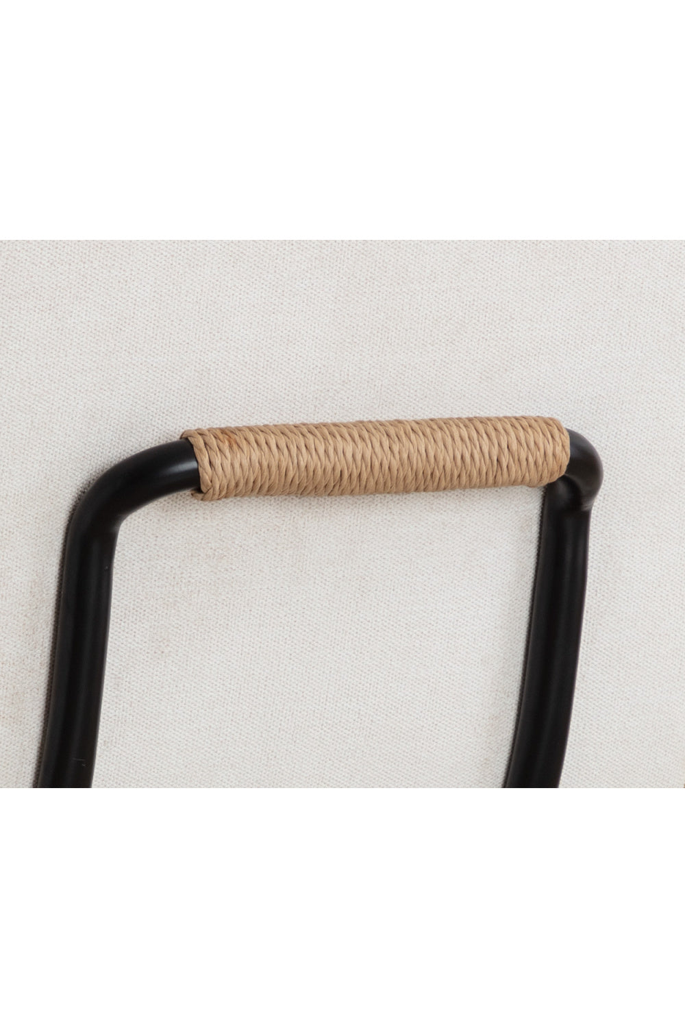 Plush seating and a simple frame make the Abilene Dining Chair versatile and incredibly comfortable. A mixed material seat features our polo club muslin performance fabric on top of a rustic oak wood frame. Paper rope detailing at the back of the chair gives an understated coastal influence while also acting as a functional handle. Powder-coated matte black legs contrast with the light-colored materials.