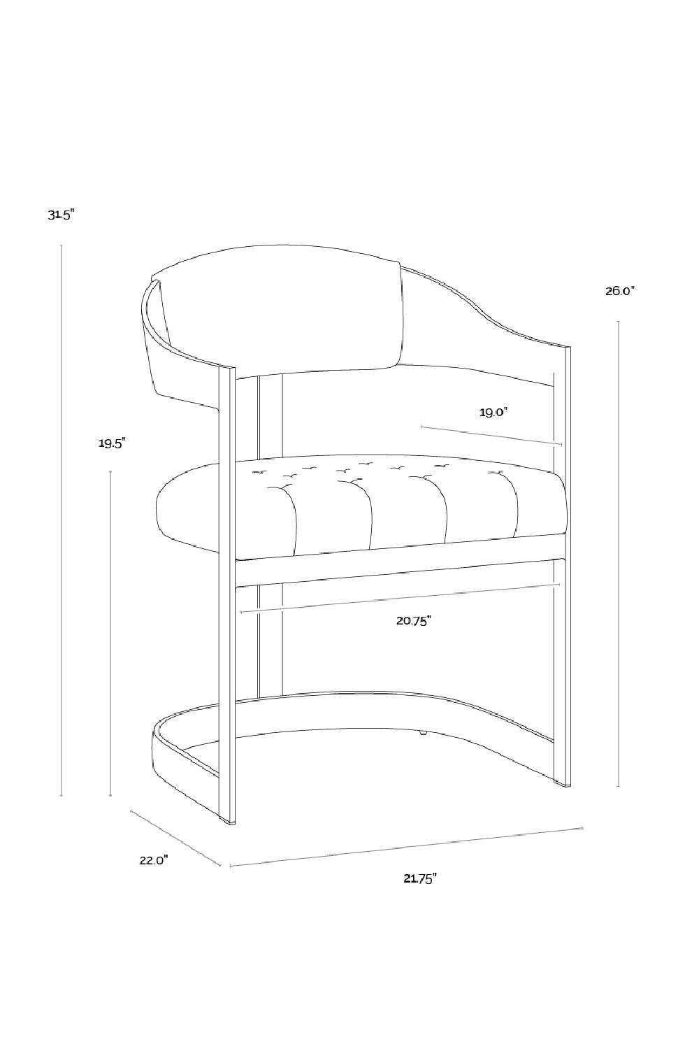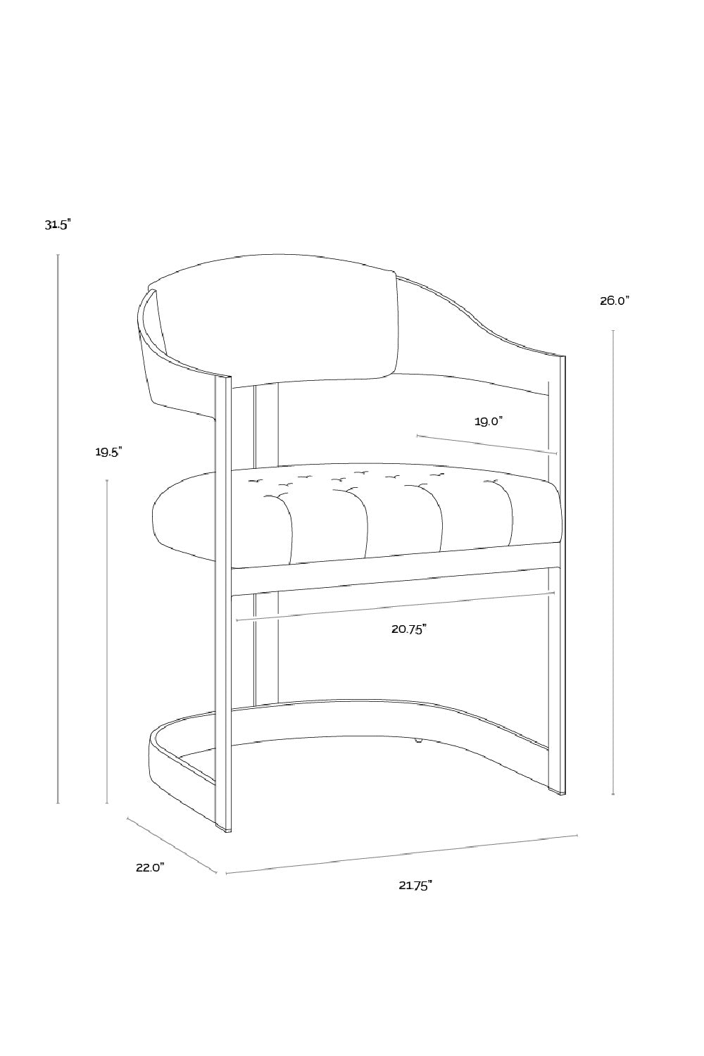 This ultra contemporary stool features a T-shaped back, tapered arms and a powder-coated antique brass stainless steel crown base. Perfectly suited for commercial and residential settings. Suitable for various dining, kitchen and bar spaces of all sizes.