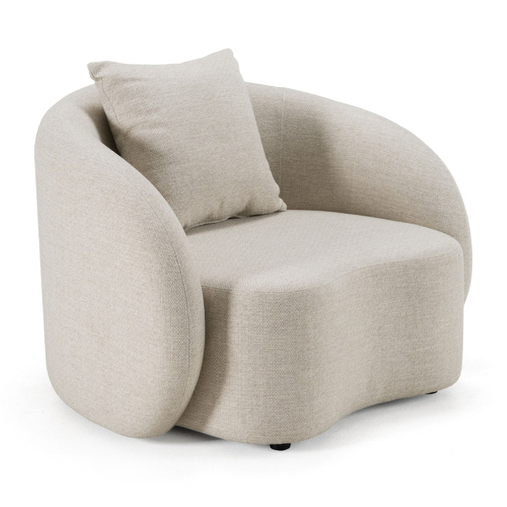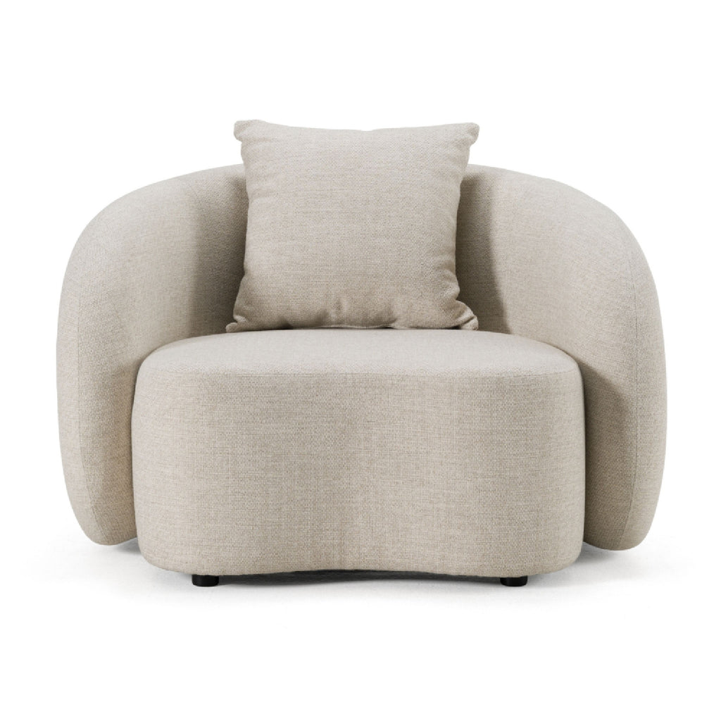 An ode to relaxed sophistication, the Tabarca Outdoor Chair invites you into a realm where elegance meets resilience. The allure of beige Acroma St Tropez fabric envelops this piece, promising not only aesthetic appeal but also water and stain resistance for enduring beauty. Gracefully poised on an aluminum frame, it offers comfort with its plush foam upholstery and a welcoming toss pillow. Here, leisure is redefined under the sun or stars, crafting an outdoor sanctuary that whispers luxury in every detail.