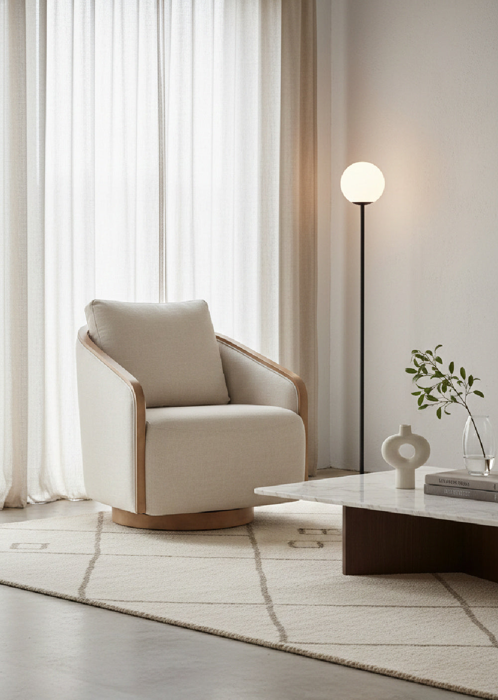 Birch Wood Frame Swivel Chair | Splendido Tasia