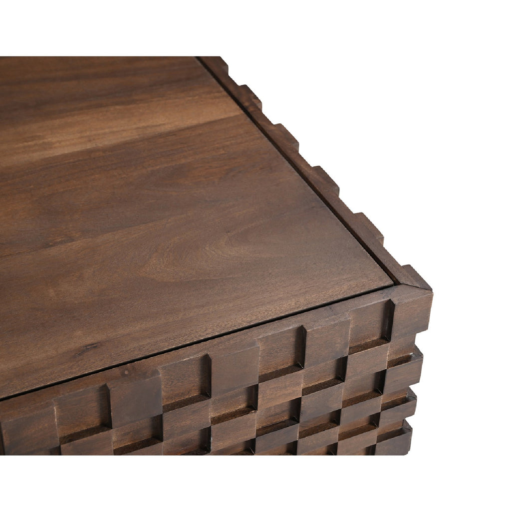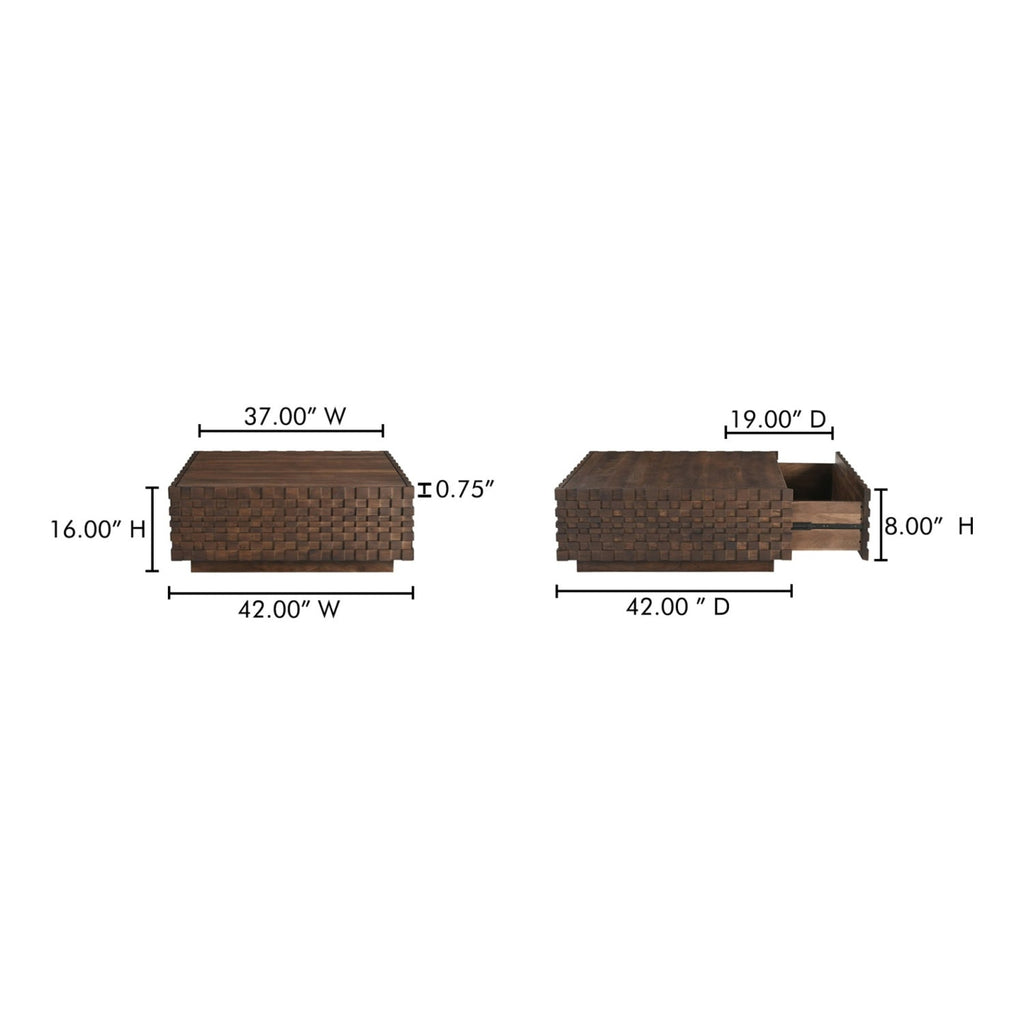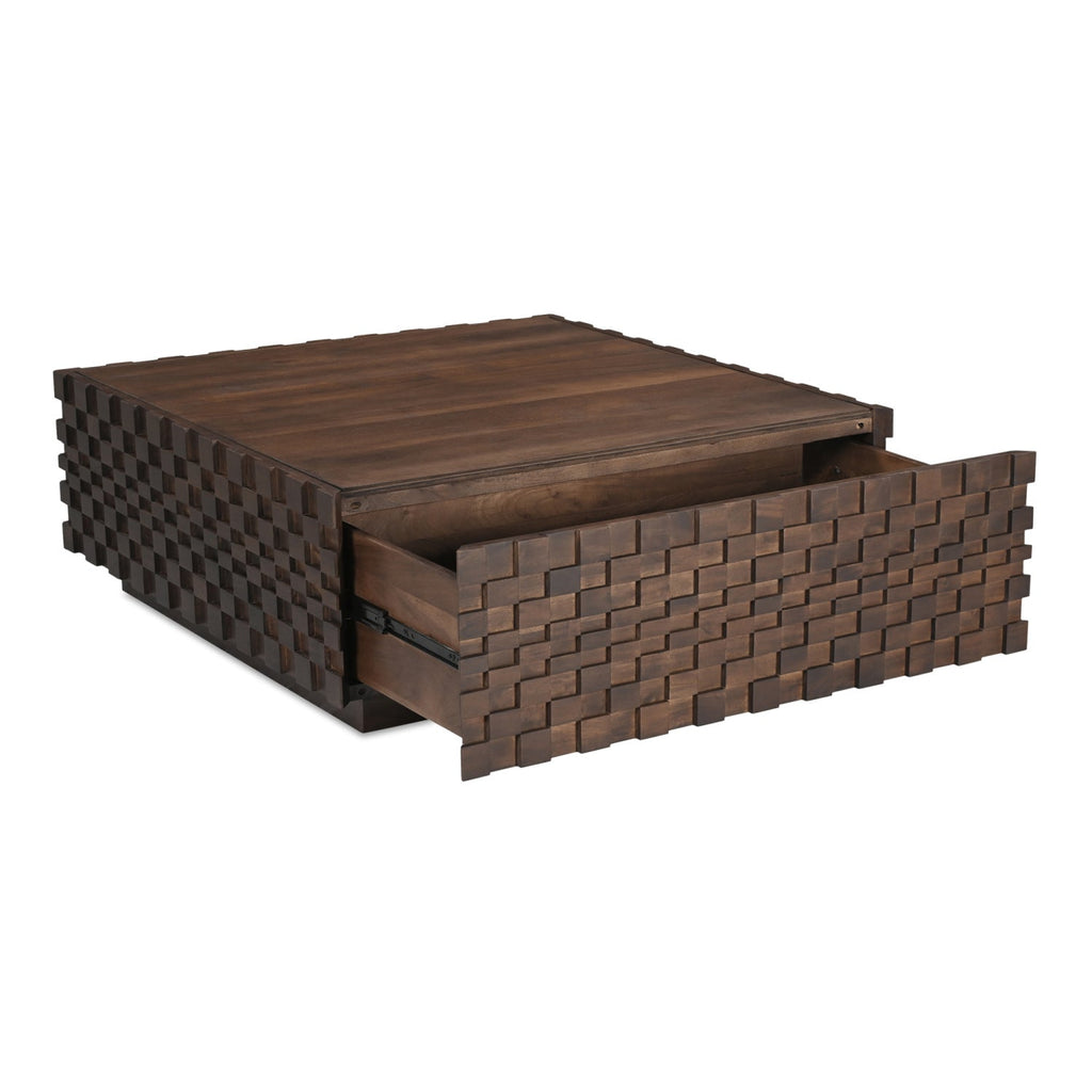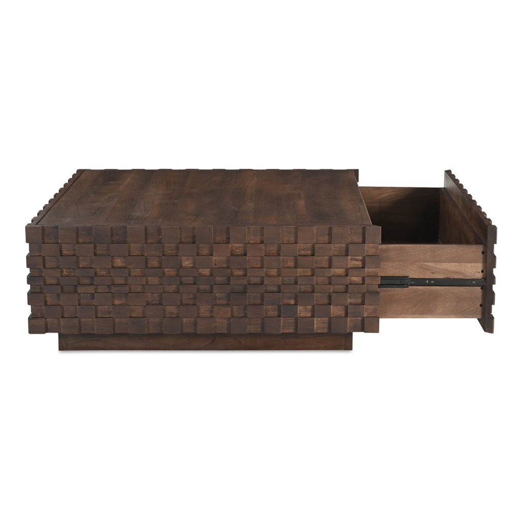 Inspired from the appreciation of geometric patterns and the beauty of simplicity, the Easton storage coffee table transforms two-dimensional designs into intriguing three-dimensional textures. This piece harnesses wood's natural vitality and depth to bring these compositions to life, creating an immersive aesthetic experience that harmonizes design and nature.