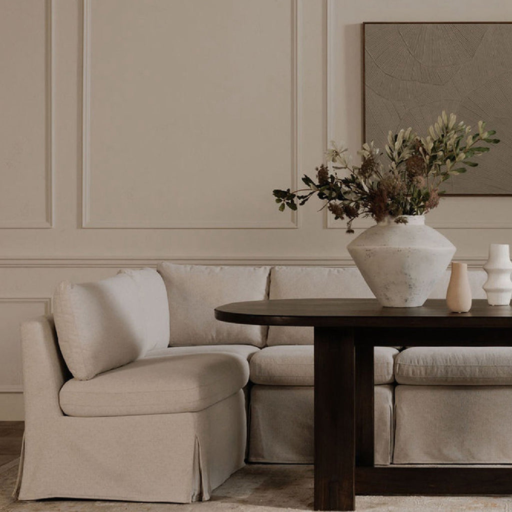 Beige L-Shaped Dining Banquette Slipcover S | Novi Living Fable