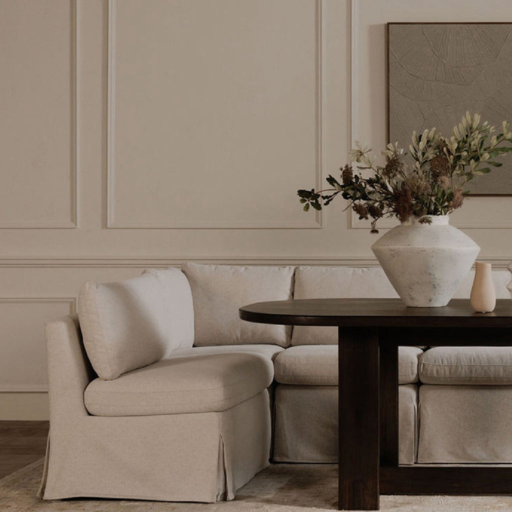 Beige L-Shaped Dining Banquette Slipcover XS | Novi Living Fable