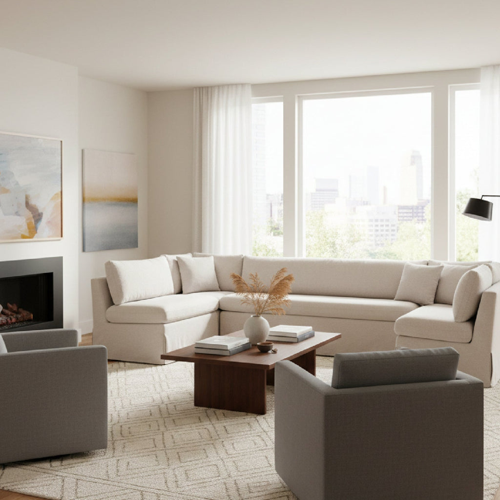 Beige U-Shaped Dining Banquette Slipcover S | Novi Living Fable