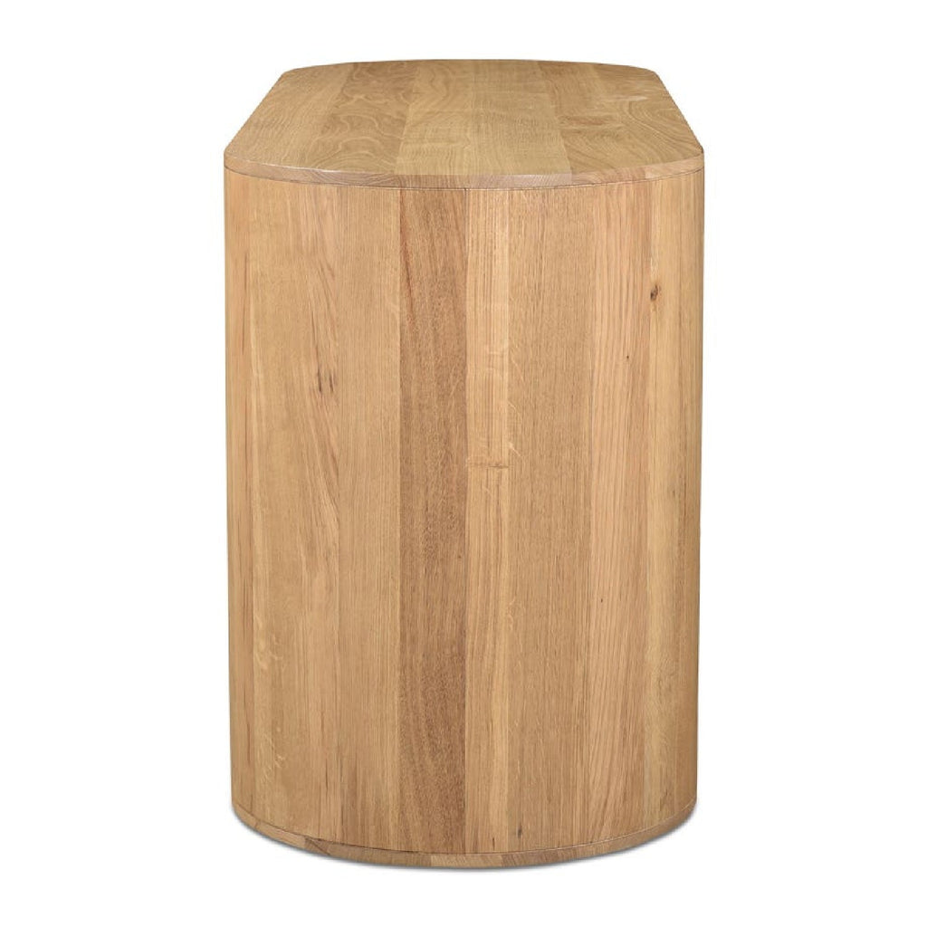 No sharp corners here. The Theo dresser’s rounded silhouette and light natural oak finish bring a breezy, organic feel to bedroom storage. With six roomy drawers, soft-close glides, and subtle pull tabs, it’s a study in modern minimalism that still gets things done. Crafted from solid oak with oak veneer backing, each piece shows off unique wood grain character. Natural beauty, functional design—Theo’s got range.
