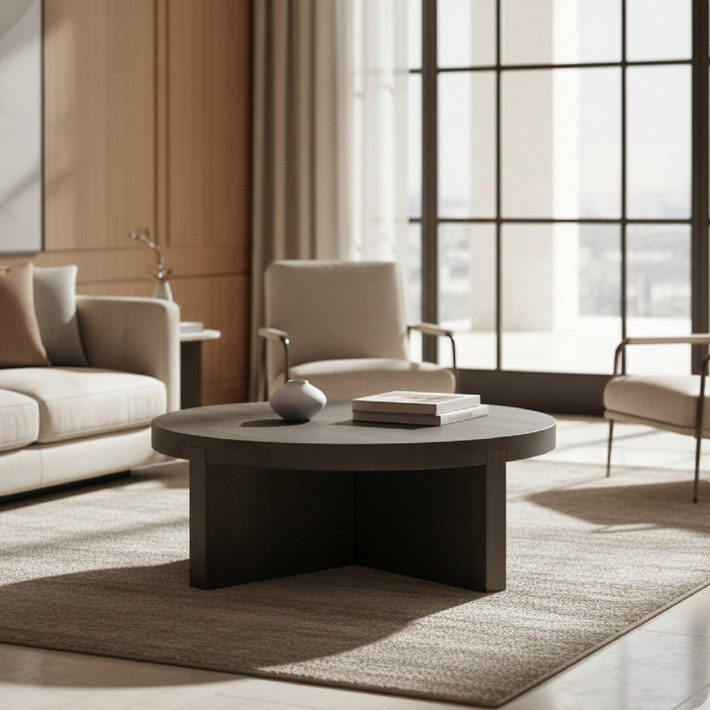 Oak Cross-Base Round Coffee Table | Novi Living Folke