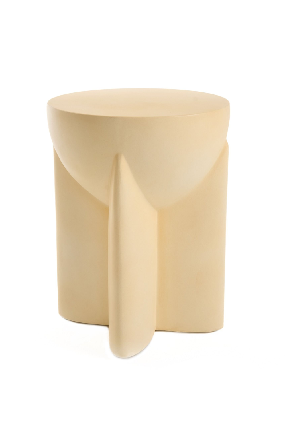 The Modrest Elsa modern beige concrete round end table exudes a chic, minimalist aesthetic. Its uniquely shaped base features soft curves that provide visual interest while ensuring stability. The light beige finish offers a warm, inviting tone, seamlessly blending with various decor styles. This table is perfect for adding a contemporary touch to living spaces or for patio, making it an ideal accent piece for any modern interior.