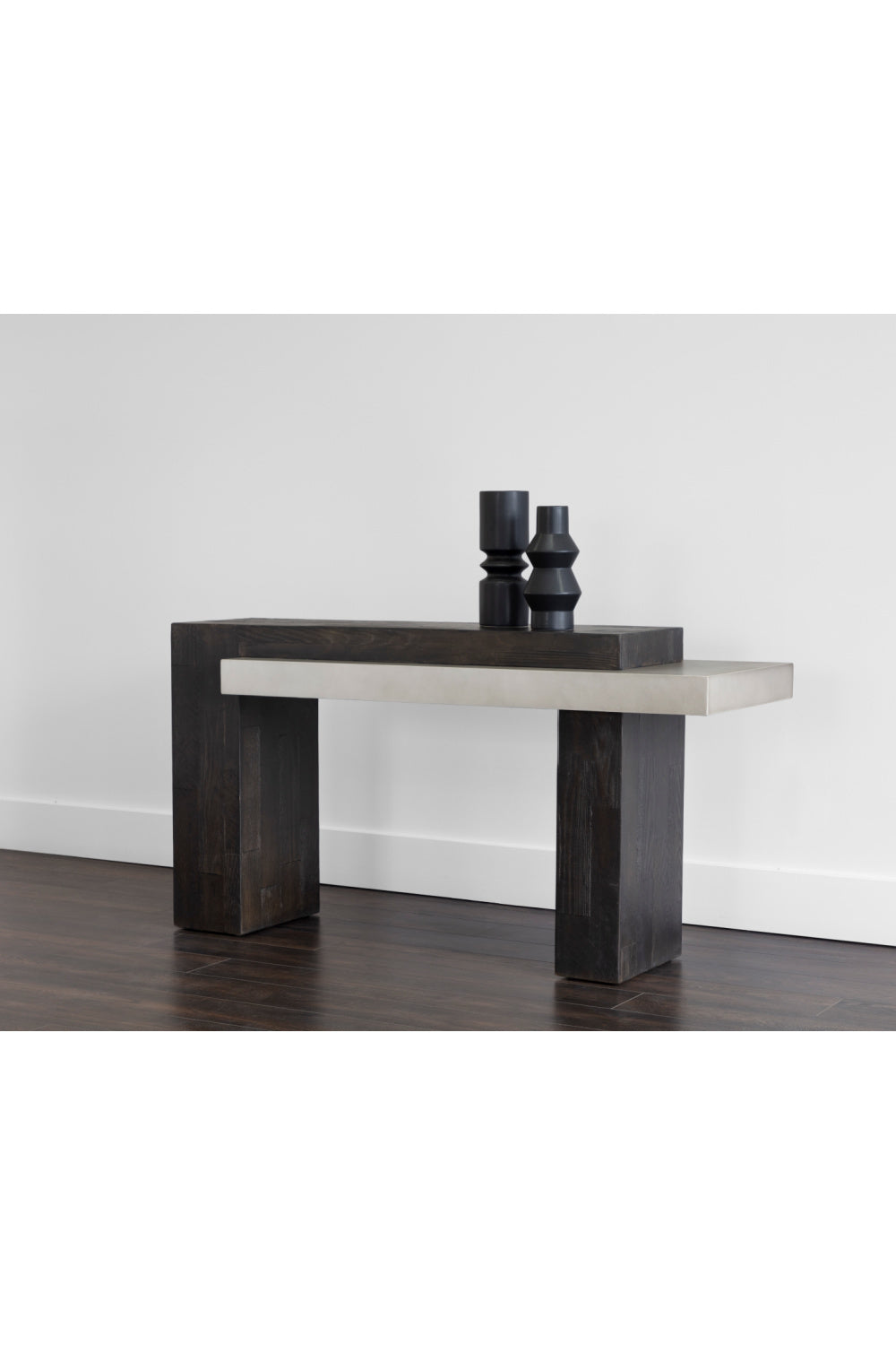 With an eye-catching design, this striking console table exudes an impressive contemporary style. Features a base crafted from brown concrete with a fascinating timber effect. Completed with an accenting summer sand concrete slab. Crafted from a natural concrete mix, each piece will look different. Variations in color, texture, imperfections, surface scratches and non-structural hairline cracks are considered inherent and valued qualities of the material. Suitable for indoor and covered outdoor spaces.