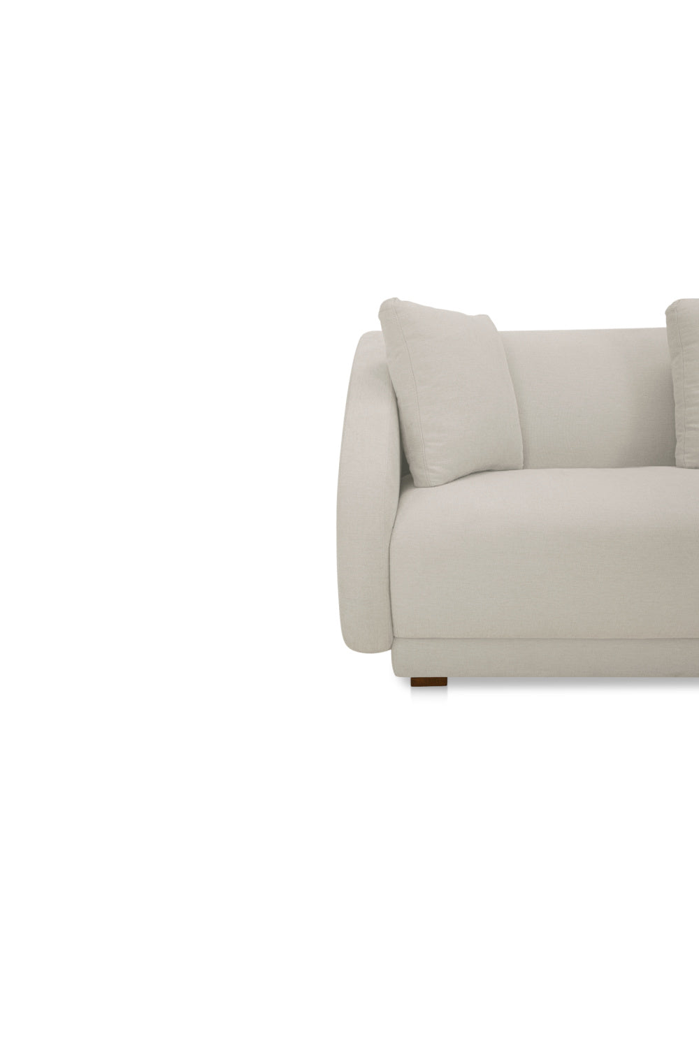 The Fraser sectional’s contemporary modular design infuses the elegance of gentle slopes with linear precision, harmoniously merging soft curves and angular forms into its 60s and 70s-inspired aesthetic. Crafted on a minimalist plinth base and upholstered in sumptuous 100% polyester, foam and fiber seating invites serene repose.