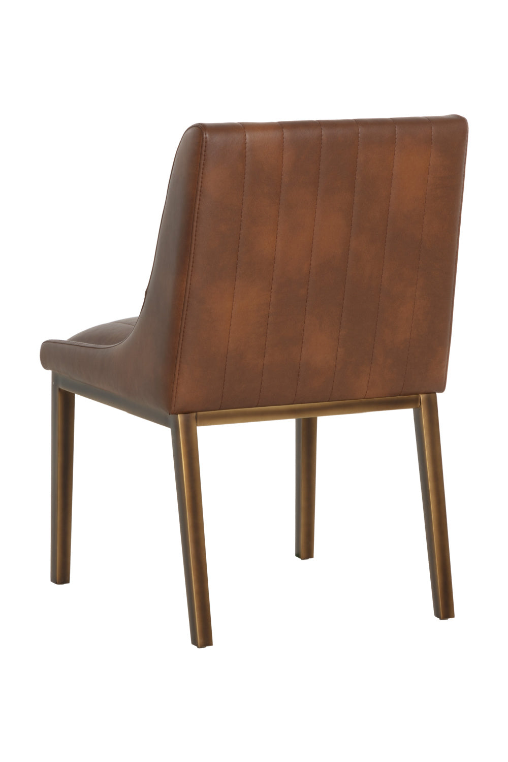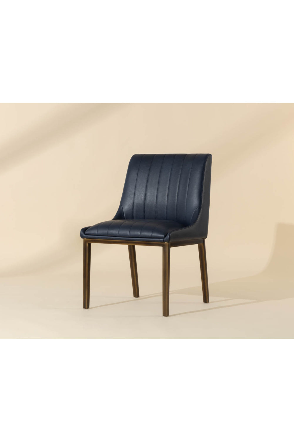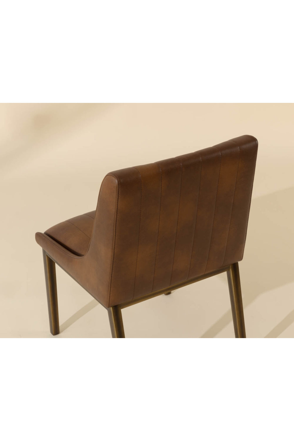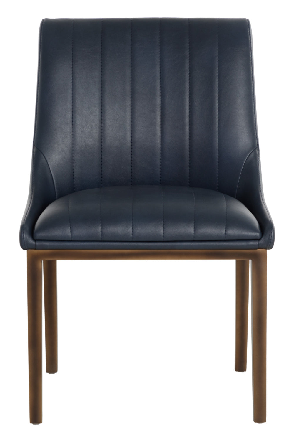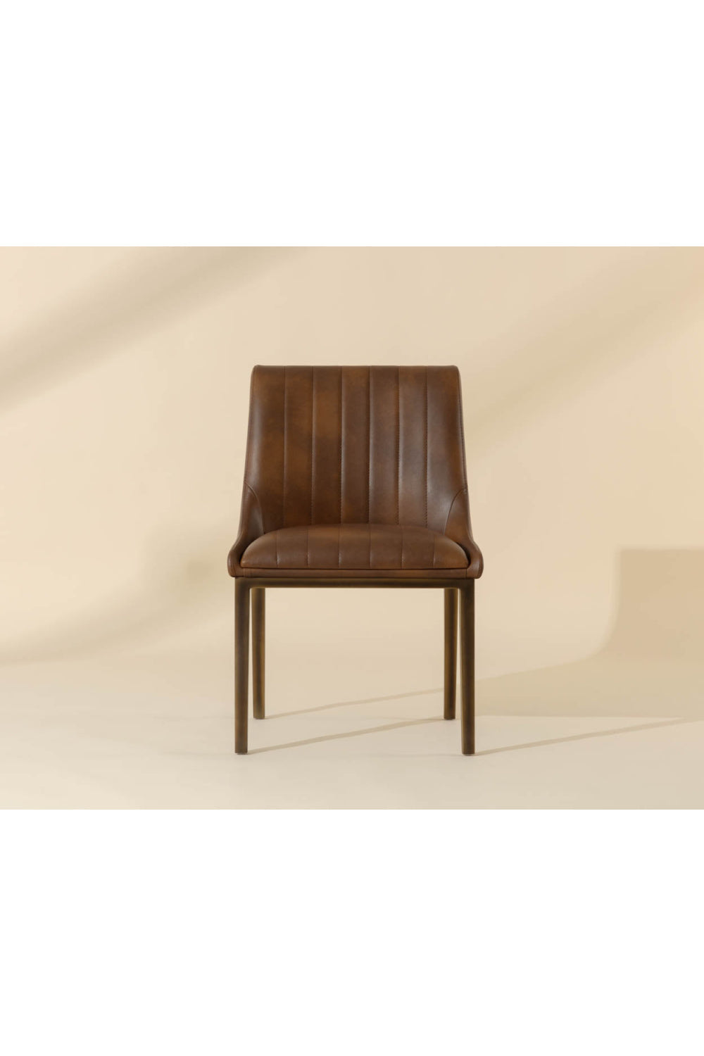 Introduce refined elegance to your interior with this curated set of two Splendido Halden dining chairs. Meticulously crafted with pronounced vertical stitching detailing across the seat and backrest, these pieces showcase thoughtful design execution. The warm rustic bronze steel framework anchors the composition with industrial-inspired character, making them equally at home in a contemporary dining room or professional office setting. A sophisticated choice for discerning spaces that value both aesthetic presence and enduring quality.