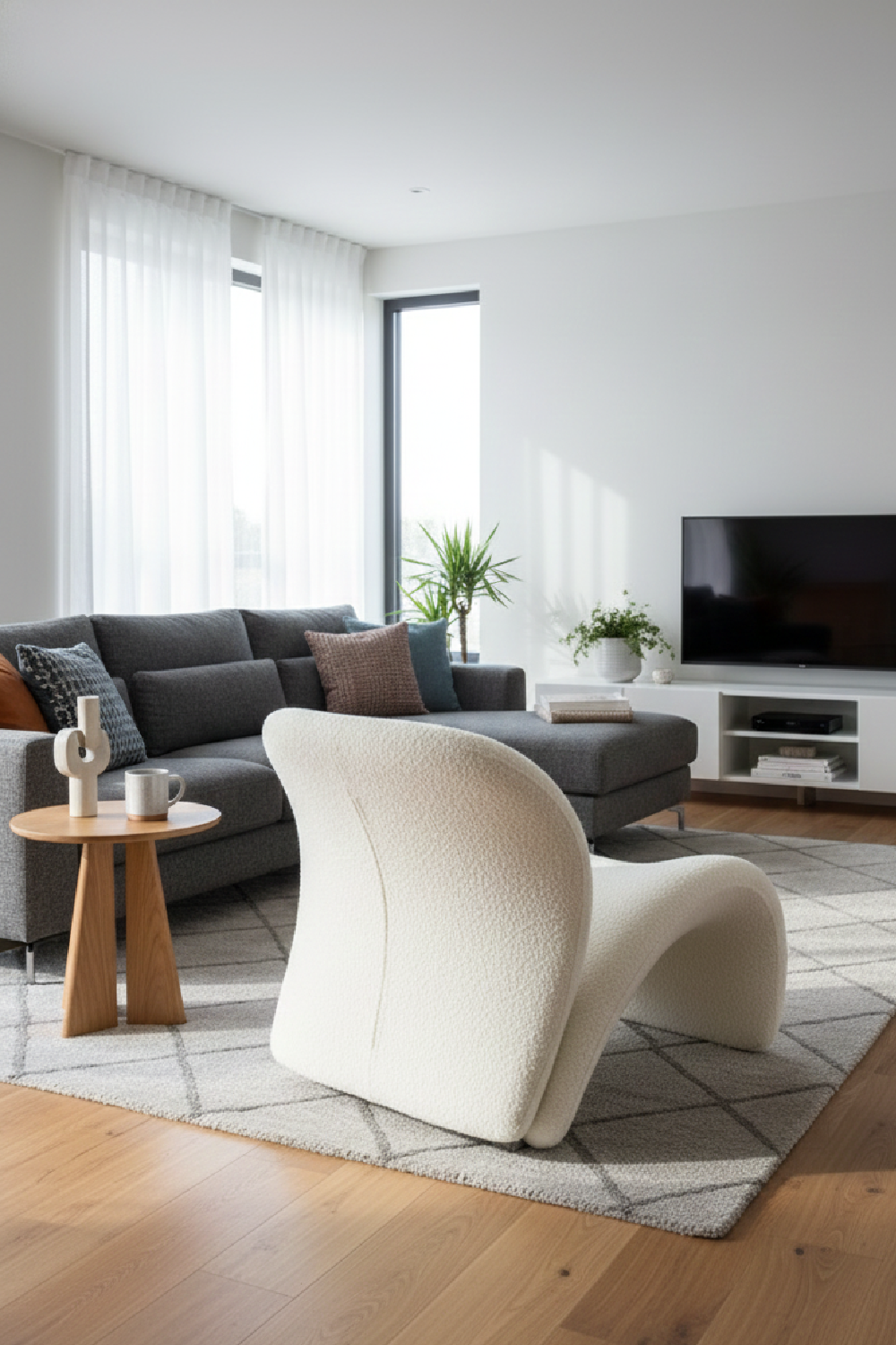 White Vegan Leather Curved Accent Chair | OROA Modern Donovan